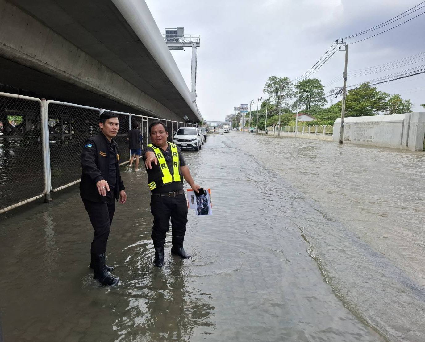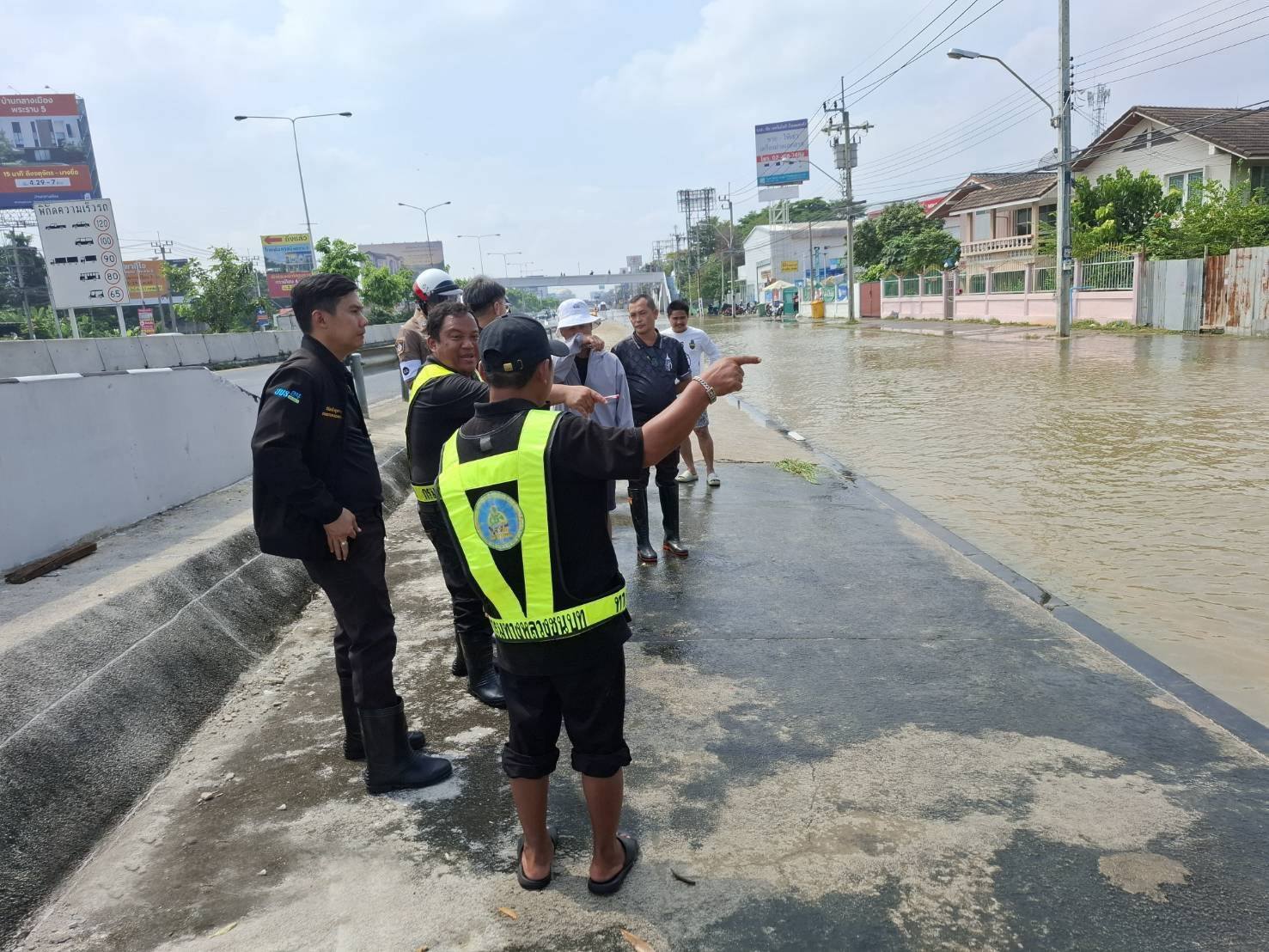 ขณะเดียวกัน ในพื้นที่จังหวัดนนทบุรี ทช. โดยสำนักบำรุงทาง และหมวดบำรุงทางหลวงชนบทนครอินทร์ ได้ร่วมบูรณาการกับหน่วยงานในพื้นที่ เพื่อติดตามสถานการณ์น้ำบริเวณถนนนครอินทร์ (ถนนทางหลวงชนบทสาย นบ.1020) พร้อมทั้งได้ร่วมลงพื้นที่กับนายเกียรติศักดิ์ ตรงศิริ ผู้ว่าราชการจังหวัดนนทบุรี เพื่อหาแนวทางในการรับมือและแก้ไขปัญหาดังกล่าวเพื่อบรรเทาความเดือดร้อนให้กับผู้ใช้ทางให้ได้มากที่สุด โดยในเบื้องต้น ทช. ได้ติดตั้งเครื่องสูบน้ำในบริเวณที่มีน้ำท่วมขัง พร้อมนำแบริเออร์คอนกรีต ป้ายเตือนน้ำท่วมมาติดตั้งบริเวณสายทางเรียบร้อยแล้ว และยังคงจัดเจ้าหน้าที่อำนวยความสะดวกปลอดภัยในการเดินทางให้กับประชาชนอย่างเต็มกำลังอีกด้วย