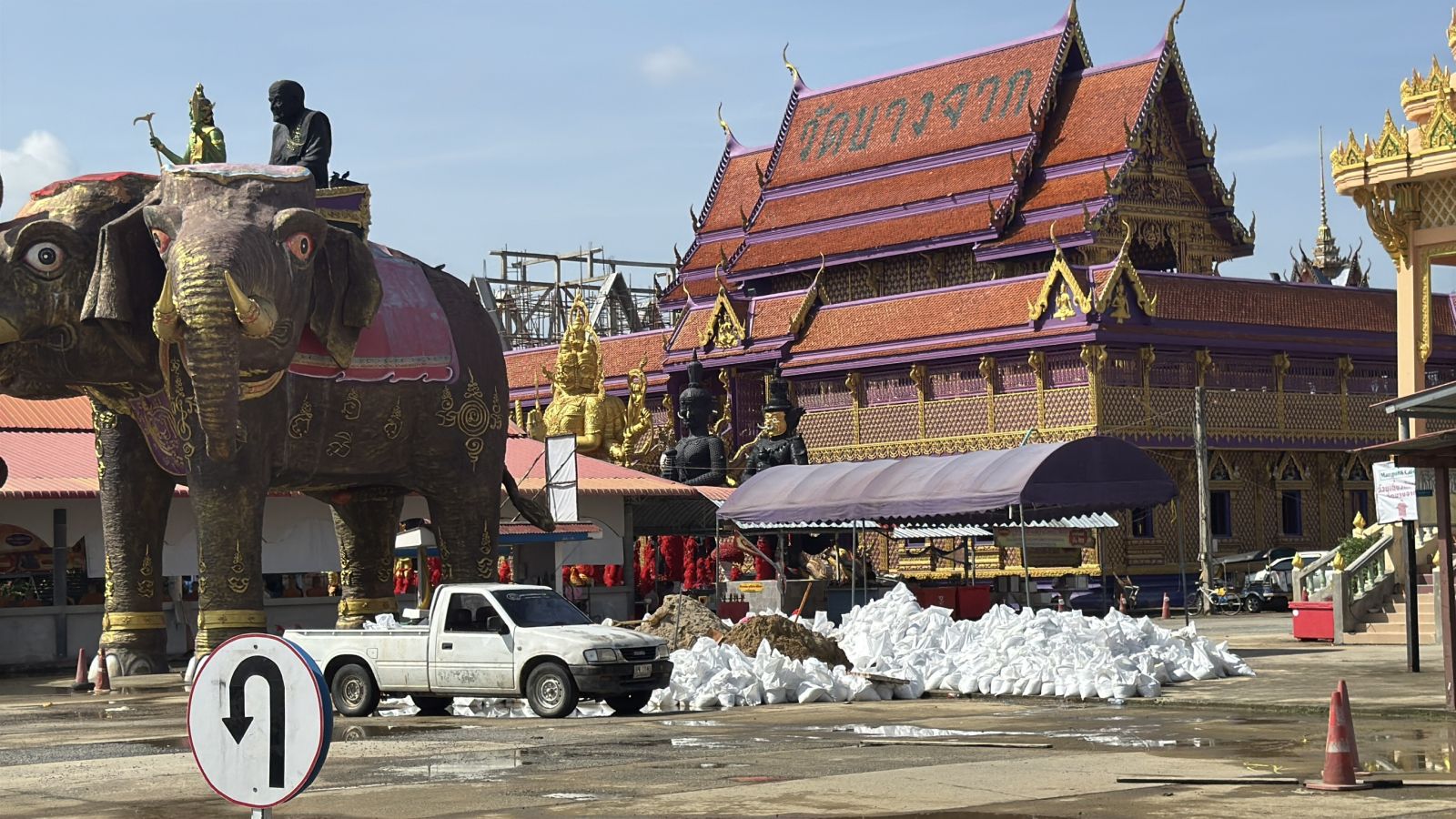 สำหรับใต้สะพานพระรามสี่ฝั่งท่าเรือวัชรีวงศ์ จุดกลับรภมีการทำแนวคันดินสูฃ 60-1.00 เมตร ระยะทางประมาณ 200 เมตร ตลอด 2 ฝั่งถนนเพื่อป้องกันน้ำเข้าท่วมถนนชัยพฤกษ์ และหมู่บ้านจัดสรร นอกจากนี้มีการนำหินคลุกมาทำคันกั้นน้ำบริเวณปากซอยวัดเตย และวัดบางจาก สูงประมาณ 50 ซม. โดยบ้านริมแม่น้ำเจ้าพระยาใน อ.ปากเกร็ดมีบ้านเรือนประชาชนได้รับผลกระทบน้ำเข้าท่วม ต.บางพูด ต.ปากเกร็ด ต.บาฃตลาด ต.เกาะเกร็ด ต.บางตะไนย์ ต.ท่าอิฐ ต.อ้อมเกร็ด ต.บางพลับ ต.คลองพระอุดม รวมกว่า 5,000 หลังคาเรือน