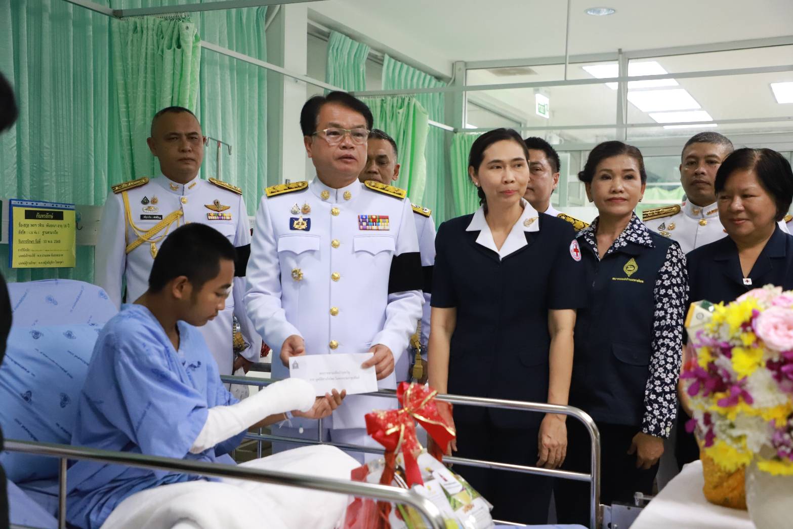 ในโอกาสเดียวกันนี้ นายชำนาญ ชื่นตา ผู้ว่าราชการจังหวัดอุบลราชธานี และนางมัณฑนา ชื่นตา นายกเหล่ากาชาดจังหวัดอุบลราชธานี ร่วมเชิญตะกร้าสิ่งของพระราชทานและเงินช่วยเหลือจากมูลนิธิสายใจไทย ในพระบรมราชูปถัมภ์ ซึ่งสมเด็จพระกนิษฐาธิราชเจ้า กรมสมเด็จพระเทพรัตนราชสุดาฯ สยามบรมราชกุมารี องค์ประธานมูลนิธิ ได้ทรงพระกรุณาโปรดเกล้าฯ ให้มอบแก่กำลังพลทั้ง 4 นาย เพื่อเป็นขวัญและกำลังใจในการรักษาตัวและฟื้นฟูสุขภาพให้แข็งแรงโดยเร็ว