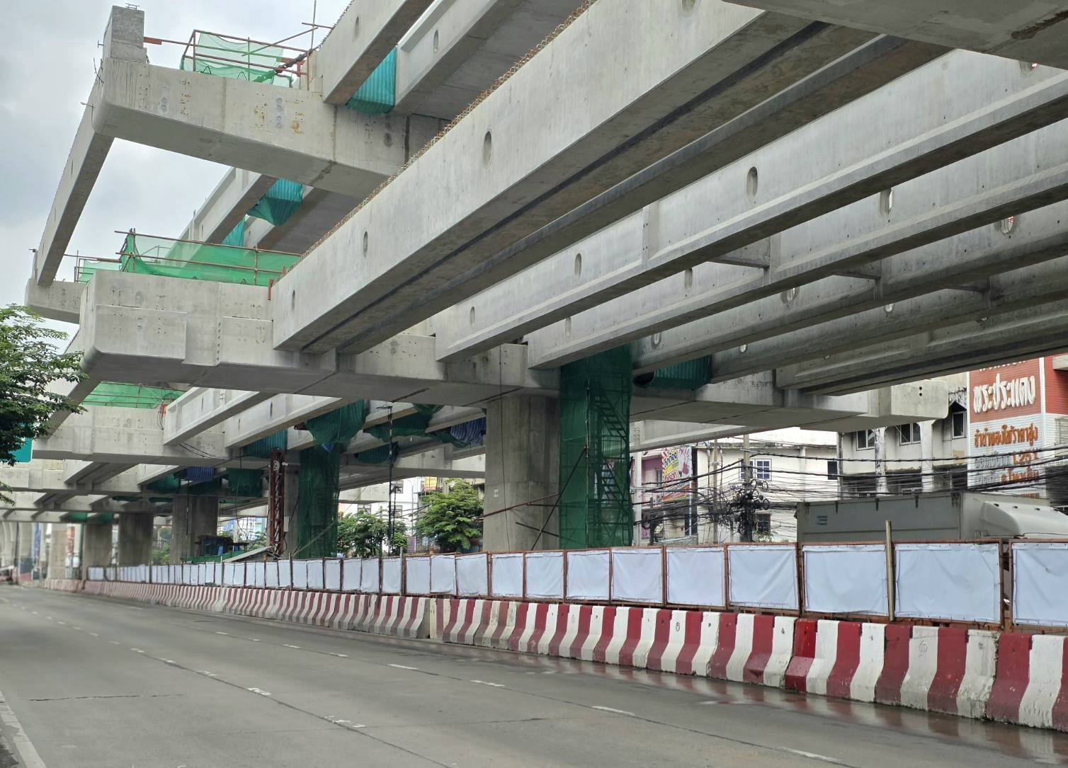 โดย รฟม. ได้ตรวจสอบการปฏิบัติตามมาตรการป้องกันและแก้ไขผลกระทบสิ่งแวดล้อมในช่วงเวลากลางวัน ตามที่กำหนดไว้ในรายงาน EIA เช่น การติดตั้งรั้วกั้นรอบพื้นที่ก่อสร้าง การตรวจสอบเครื่องจักรและบำรุงรักษาเครื่องยนต์ให้อยู่ในสภาพพร้อมใช้งาน การปิดคลุมกองวัสดุที่ก่อให้เกิดฝุ่นละอองระหว่างรอการใช้งานหรือรอการขนย้าย การทำความสะอาดล้อรถก่อนออกจากพื้นที่ก่อสร้าง การติดตั้งป้ายสัญญาณจราจรและป้ายเตือนต่างๆ และการจัดทำทางเดินชั่วคราวเพื่ออำนวยความสะดวกให้ประชาชนสามารถสัญจรได้ในระหว่างที่มีการก่อสร้าง เป็นต้น นอกจากนี้ รฟม. ยังได้ลงพื้นที่จุดวางรางรถไฟฟ้าด้านบนพื้นที่ก่อสร้างอาคารจอดรถไฟฟ้า (Stabling Yard) เพื่อตรวจสอบการดำเนินงานเพิ่มเติม เช่น การเก็บกองรางรถไฟ การป้องกันสะเก็ดไฟเชื่อมรางหล่นลงสู่พื้นที่ด้านล่าง เป็นต้น ทั้งนี้ กองสิ่งแวดล้อม รฟม. มีการลงพื้นที่ตรวจสอบและติดตามการดำเนินงานอย่างต่อเนื่องเป็นประจำทุกเดือน เพื่อให้เป็นไปตามนโยบายของกระทรวงคมนาคม และคณะกรรมการ รฟม. ที่เน้นย้ำให้ผู้ปฏิบัติงานต้องดำเนินการตามมาตรการการป้องกันและแก้ไขผลกระทบสิ่งแวดล้อมอย่างเคร่งครัด