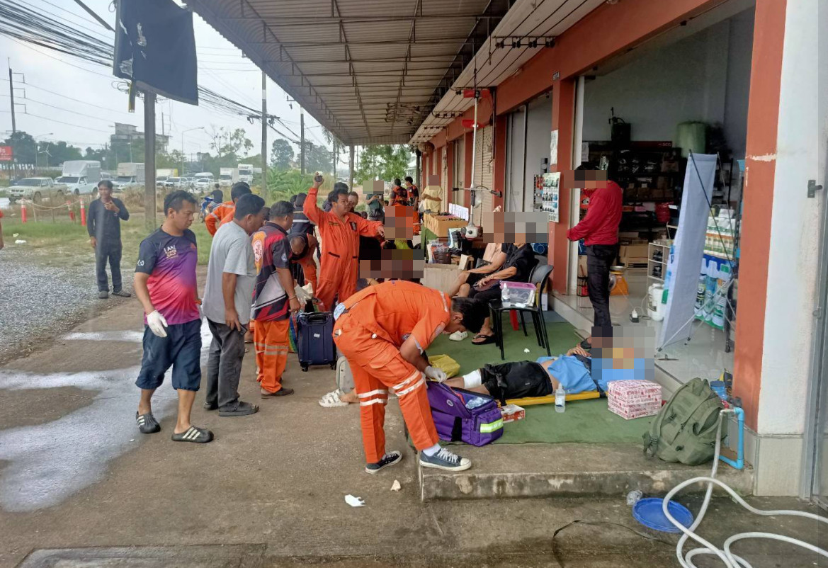 วันนี้ เมื่อเวลา 12.30 น. รับแจ้งอุบัติเหตุ บนถนนสุขุมวิท ขาออก ช่วง กม.277 ม.1 ต.ทุ่งควายกิน อ.แกลง จ.ระยอง รถมินิบัส สายกรุงเทพฯ - สุวรรณภูมิ - จันทบุรี ลื่นไถลลงไปยังร่องกลางถนน ส่งผลให้มีผู้บาดเจ็บเล็กน้อย รวม 17 ราย เจ้าหน้าที่กู้ภัยช่วยเหลือคนเจ็บ ส่ง รพ.แกลง จำนวน 2 ราย ส่วนผู้โดยสาร ที่ได้รับบาดเจ็บเล็กน้อยไม่ประสงค์ รพ. บริษัทจัดรถมารับเพื่อนำส่งไปยังจุดหมายปลายทางต่อไป สาเหตุอยู่ระหว่างการสอบสวนของเจ้าหน้าที่ สภ.แกลง #รายงานจราจร #อุบัติเหตุ #ระยอง #FM91