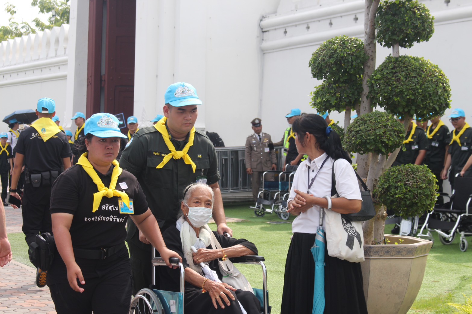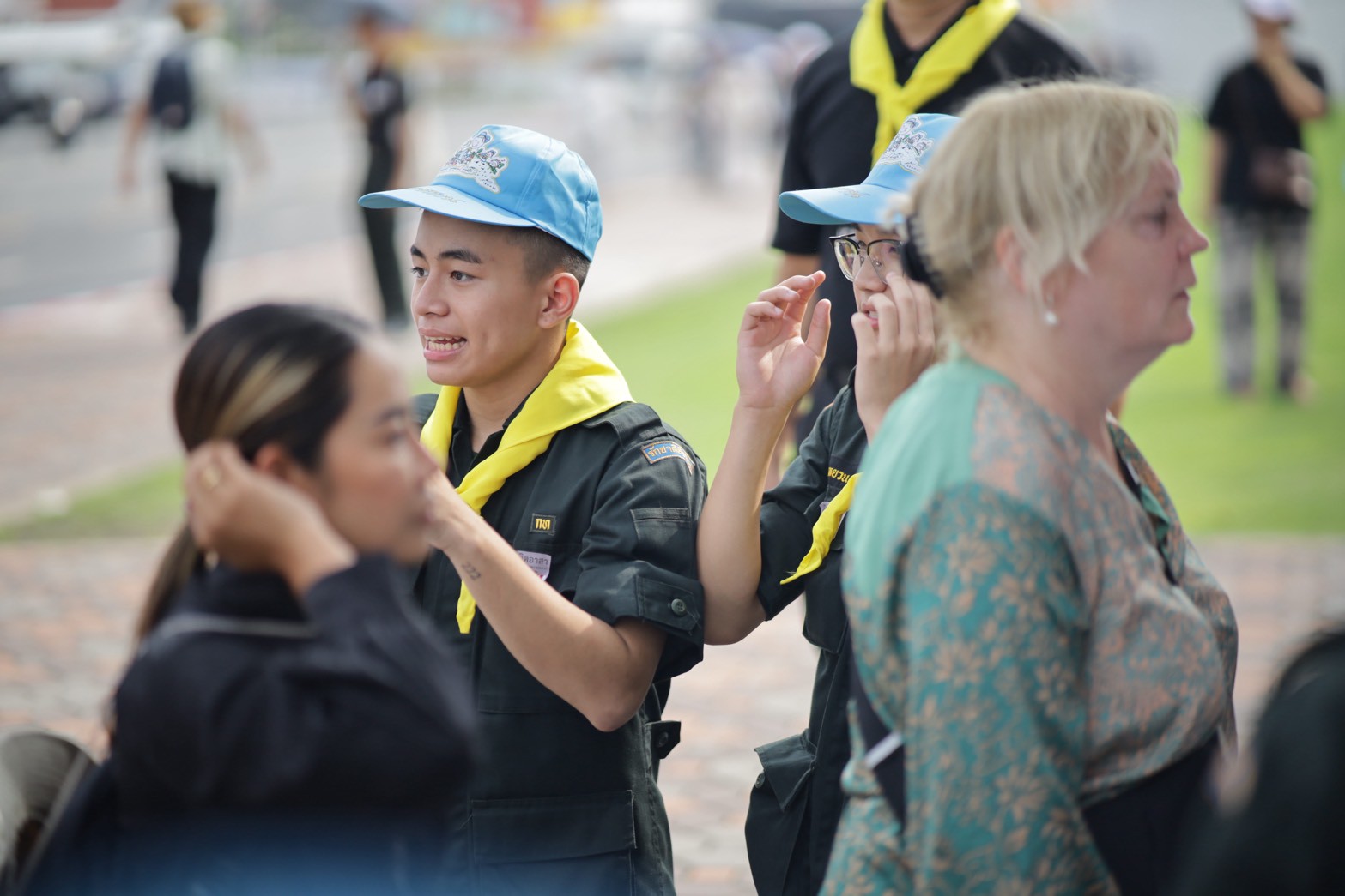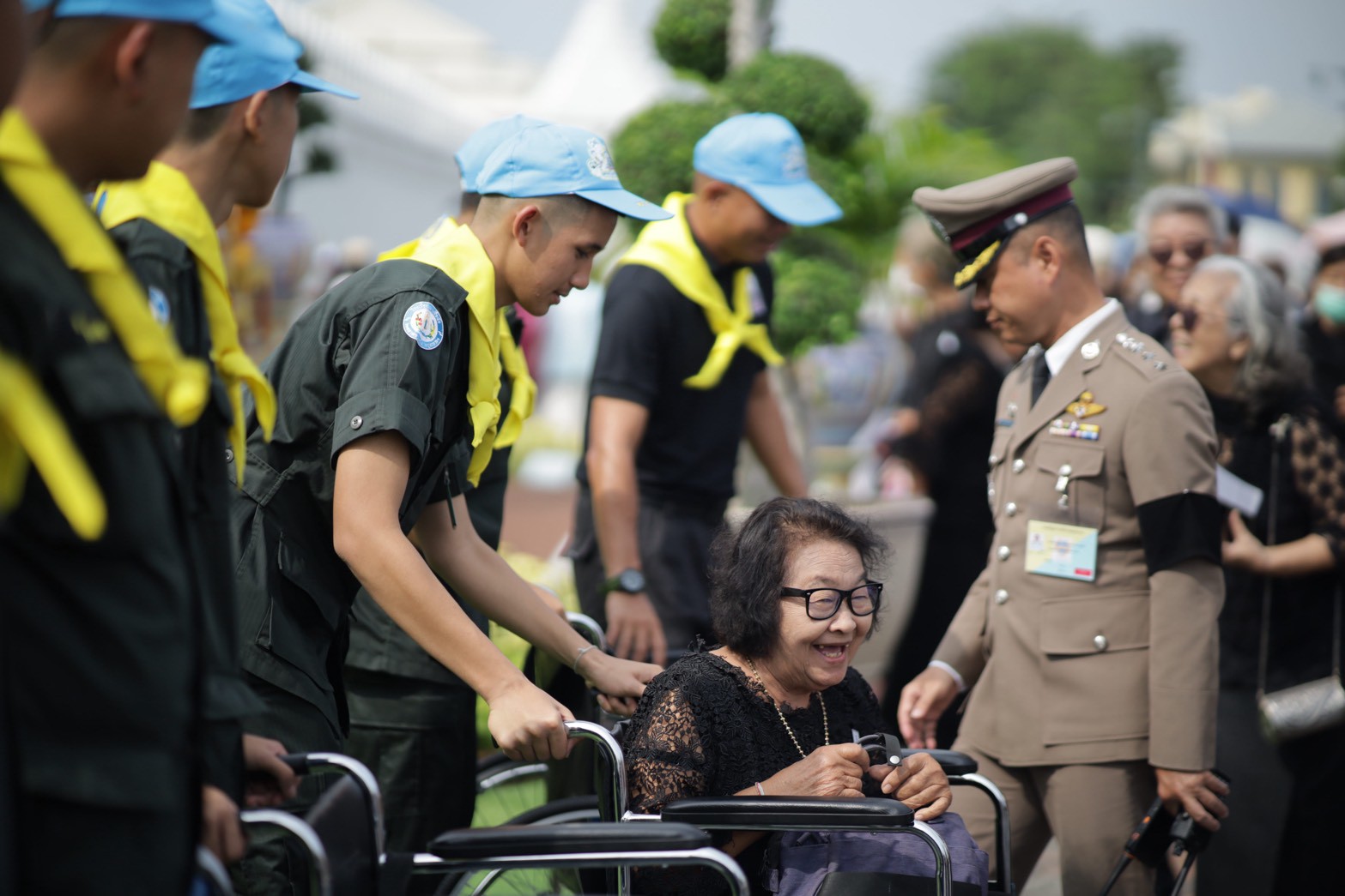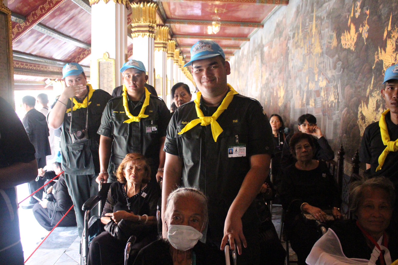นักศึกษาวิชาทหาร โรงเรียนนานาชาตินีวา ร่วมกิจกรรมจิตอาสาเฉพาะกิจ อำนวยความสะดวกประชาชน บริการรถเข็นผู้สูงอายุและผู้พิการ รวมถึงประชาสัมพันธ์แนะนำข้อมูลกับชาวต่างชาติ ที่เข้ากราบถวายบังคมพระบรมศพ สมเด็จพระนางเจ้าสิริกิติ์ พระบรมราชินีนาถ พระบรมราชชนนีพันปีหลวง ณ พระที่นั่งดุสิตมหาปราสาท