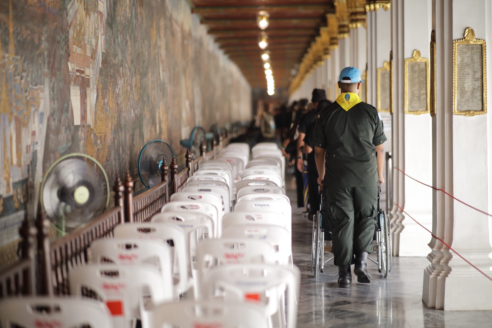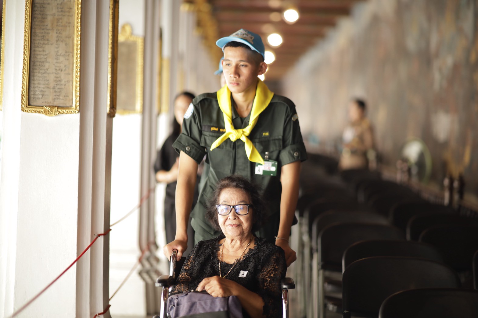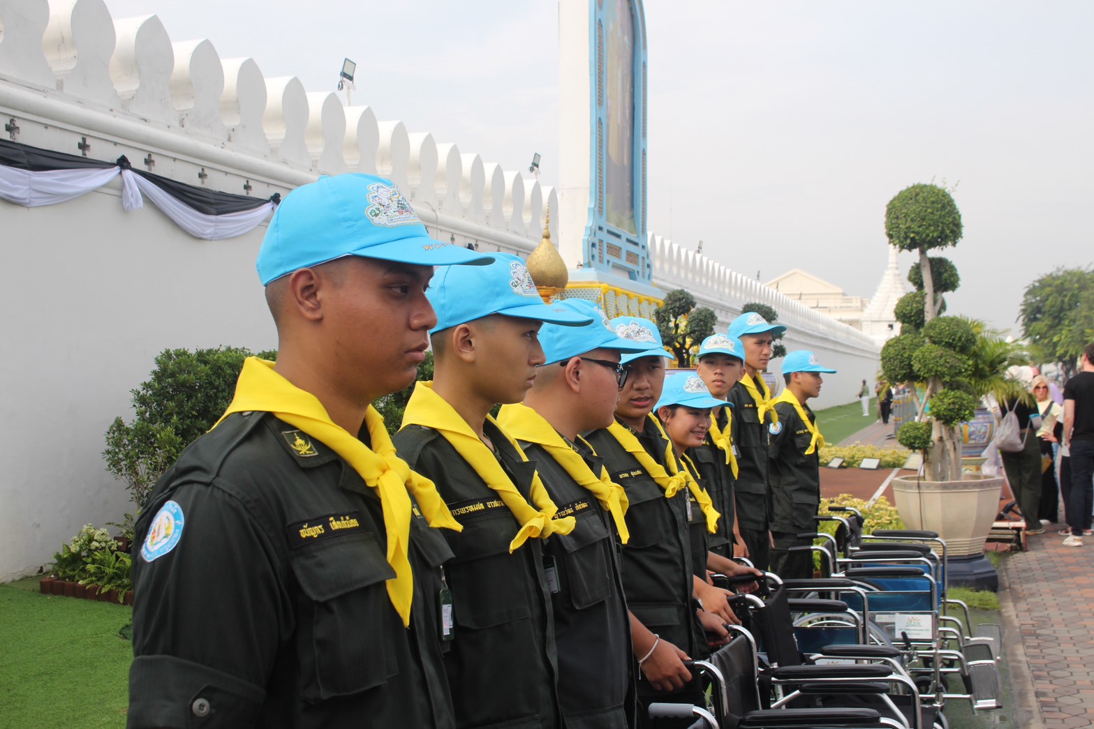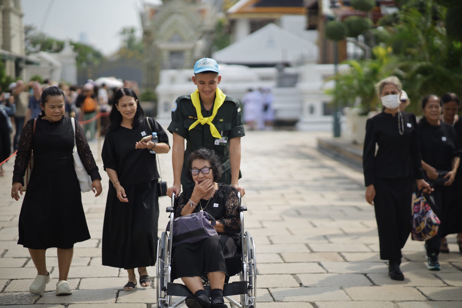 นักศึกษาวิชาทหาร โรงเรียนนานาชาตินีวา ร่วมกิจกรรมจิตอาสาเฉพาะกิจ อำนวยความสะดวกประชาชน บริการรถเข็นผู้สูงอายุและผู้พิการ รวมถึงประชาสัมพันธ์แนะนำข้อมูลกับชาวต่างชาติ ที่เข้ากราบถวายบังคมพระบรมศพ สมเด็จพระนางเจ้าสิริกิติ์ พระบรมราชินีนาถ พระบรมราชชนนีพันปีหลวง ณ พระที่นั่งดุสิตมหาปราสาท