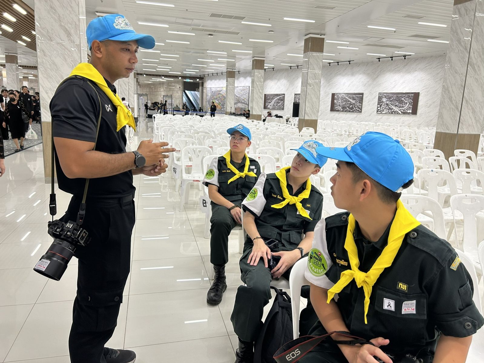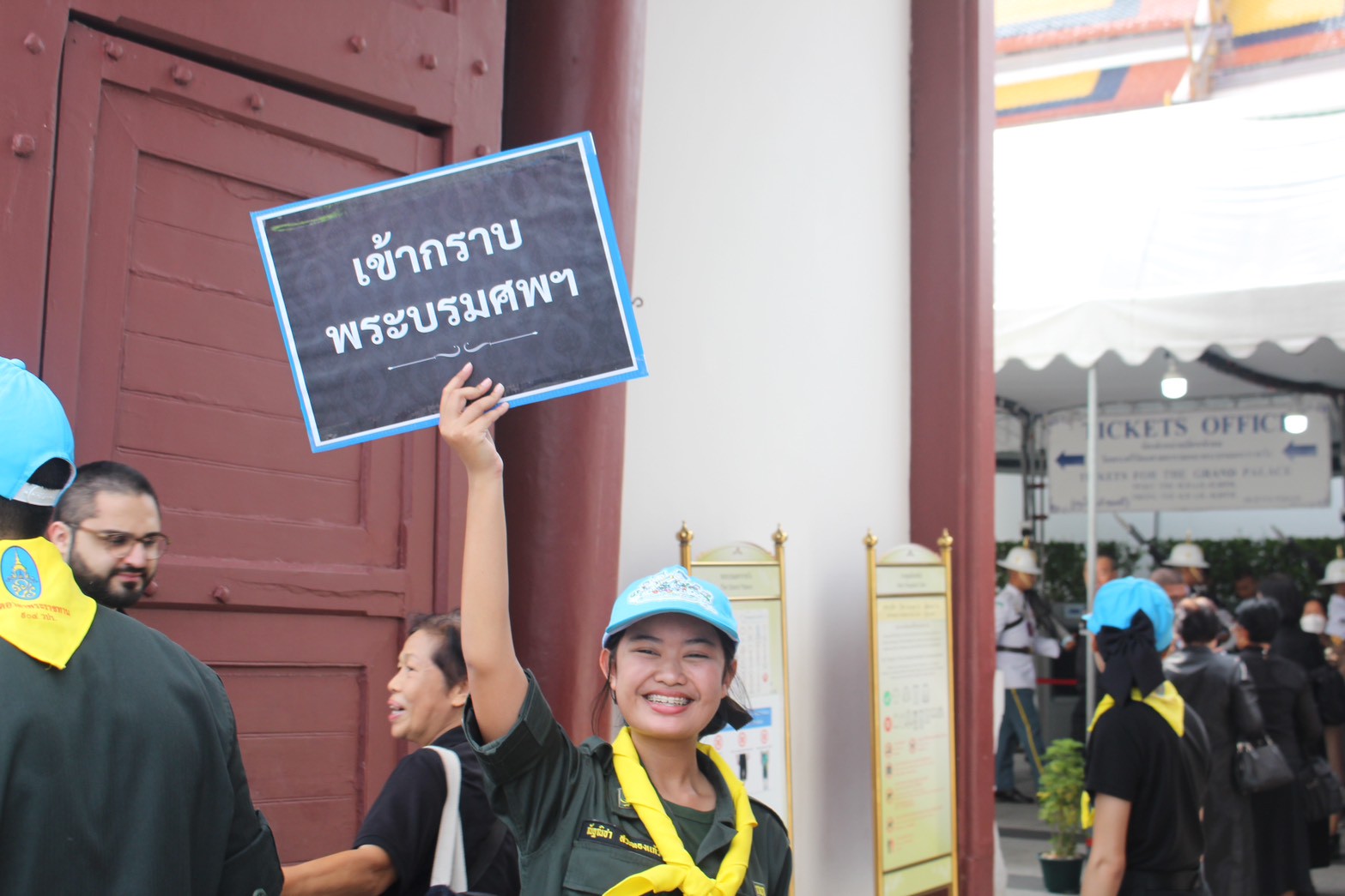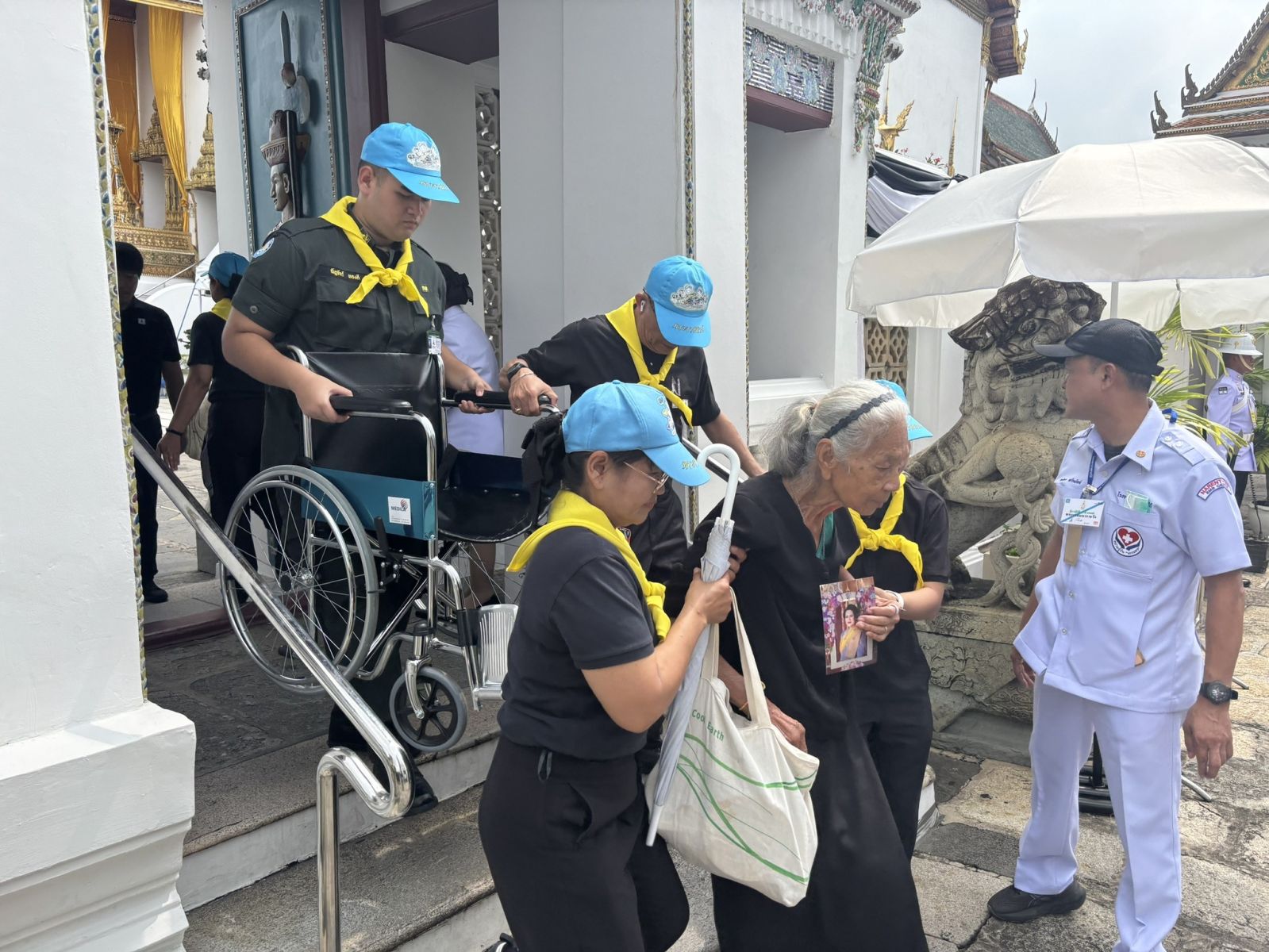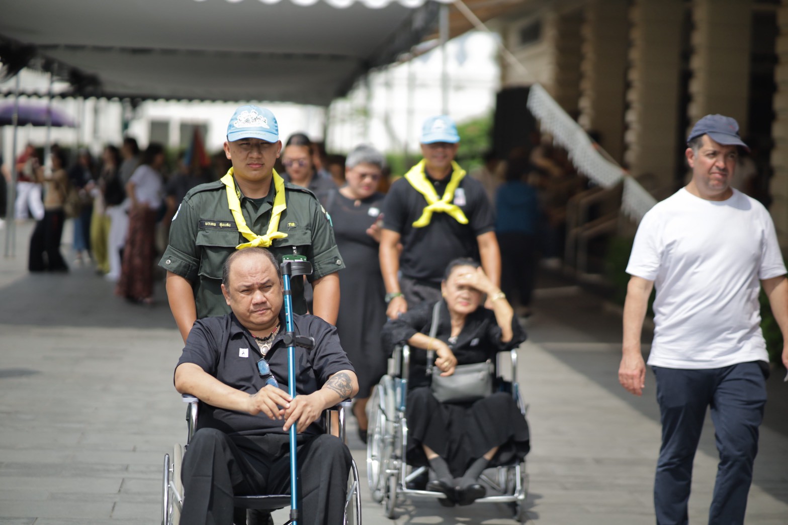 นักศึกษาวิชาทหาร โรงเรียนนานาชาตินีวา ร่วมกิจกรรมจิตอาสาเฉพาะกิจ อำนวยความสะดวกประชาชน บริการรถเข็นผู้สูงอายุและผู้พิการ รวมถึงประชาสัมพันธ์แนะนำข้อมูลกับชาวต่างชาติ ที่เข้ากราบถวายบังคมพระบรมศพ สมเด็จพระนางเจ้าสิริกิติ์ พระบรมราชินีนาถ พระบรมราชชนนีพันปีหลวง ณ พระที่นั่งดุสิตมหาปราสาท