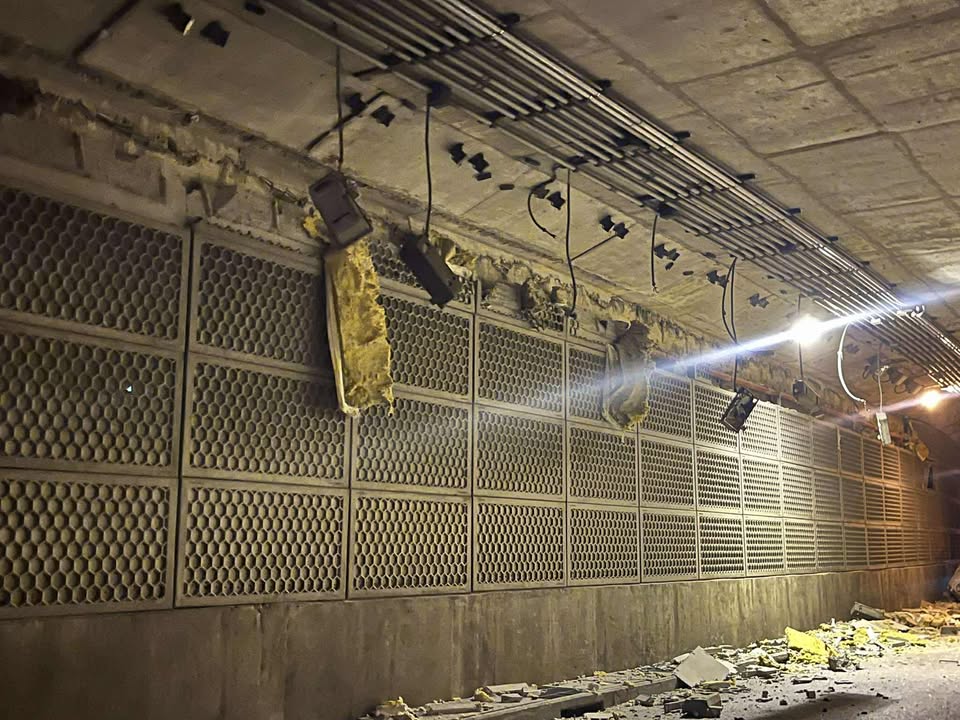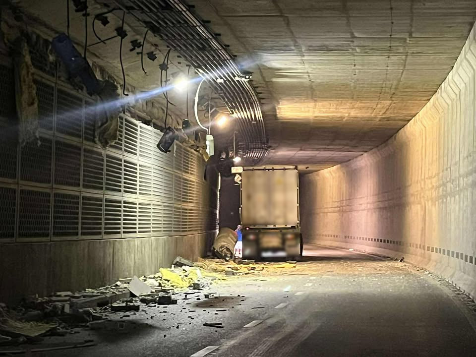 รถเทรลเลอร์ชนท่อพัดลมระบายอากาศ ได้รับความเสียหาย เจ้าหน้าที่ปิดการจราจร ภายในอุโมงค์กรุงเทพกรีฑา