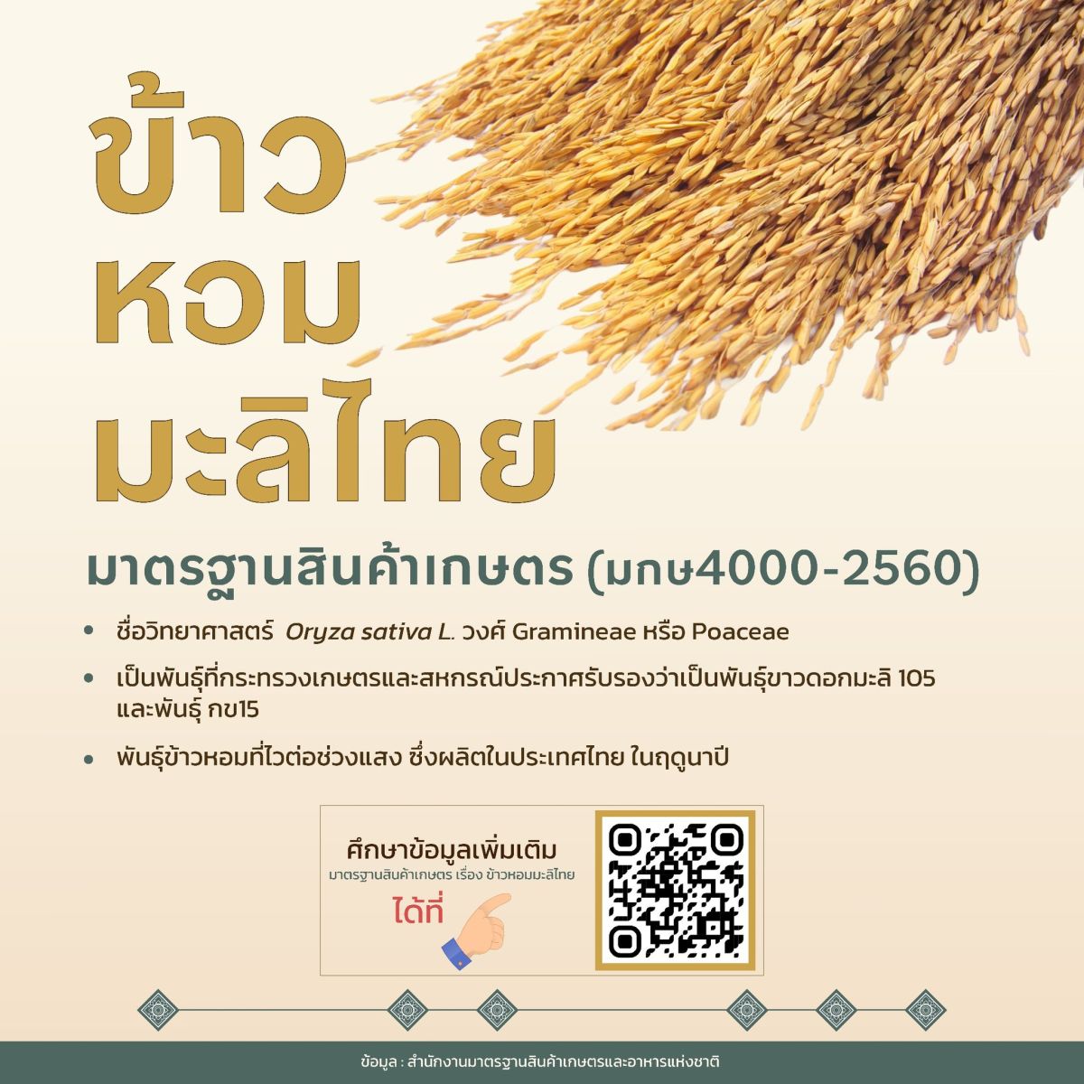 วันที่ 17 พฤศจิกายน 2568 นายอานนท์ นนทรีย์ อธิบดีกรมการข้าว เปิดเผยว่า จากกรณีที่มีความเข้าใจคลาดเคลื่อนของเกษตรกรเกี่ยวกับข้าว "หอมมะลิ" และ "หอมสยาม" ซึ่งอาจนำไปสู่ความสับสนด้านราคารับซื้อและส่งผลต่อรายได้ของเกษตรกรนั้น กรมการข้าวขอชี้แจงว่า ข้าวหอมมะลิของไทยมีเพียง 2 พันธุ์เท่านั้น คือ ขาวดอกมะลิ 105 และ กข15 เท่านั้น