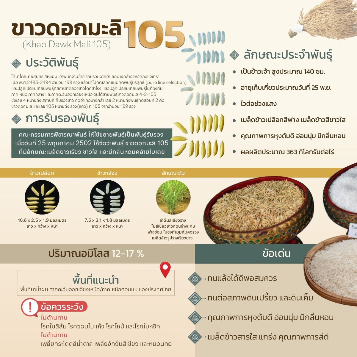 "ขณะนี้กรมฯ ยังคงเดินหน้า วิจัยและพัฒนาพันธุ์ข้าวใหม่อย่างต่อเนื่อง โดยเน้นสายพันธุ์ที่ตรงกับความต้องการของตลาด มีคุณภาพสูง ทนทานต่อโรคพืชและแมลง ให้ผลผลิตต่อไร่สูง และที่สำคัญสามารถ ช่วยลดต้นทุนและเพิ่มรายได้ให้เกษตรกร"