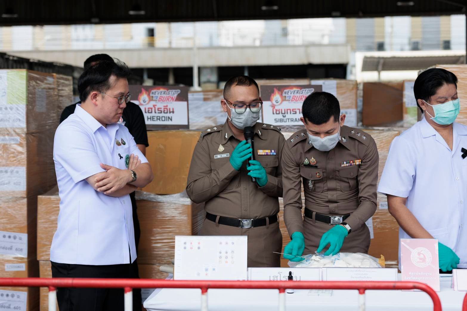 ยาเสพติดที่เผาทำลายในวันนี้ เป็นของกลางที่ผ่านการตรวจรับและอนุมัติให้ทำลายจากคดียาเสพติด 55,876 คดี น้ำหนักรวมหีบห่อ 43,643 กิโลกรัม เป็นน้ำหนักยาเสพติด 34,655 กิโลกรัม ส่วนใหญ่เป็นยาบ้า 24,095 กิโลกรัม รองลงมาเป็นไอซ์ 7,208 กิโลกรัม คีตามีน 1,642 กิโลกรัม ไขบูทรามีน 554 กิโลกรัม เฮโรอีน 478 กิโลกรัม คลอรัลไฮเดรต 306 กิโลกรัม ฝิ่น 160 กิโลกรัม