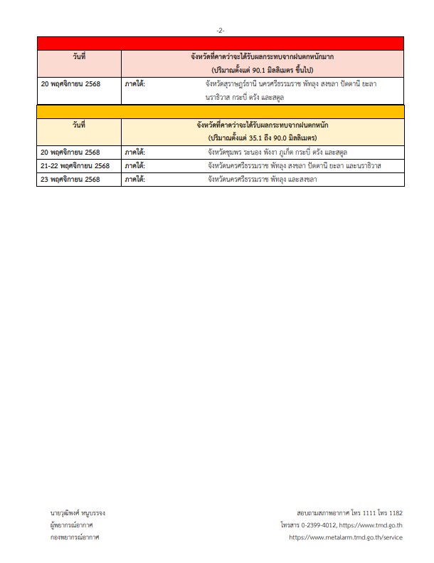 กรมอุตุนิยมวิทยาจะออกประกาศฉบับต่อไปในวันที่ 21 พฤศจิกายน พ.ศ. 2568 เวลา 05.00 น.