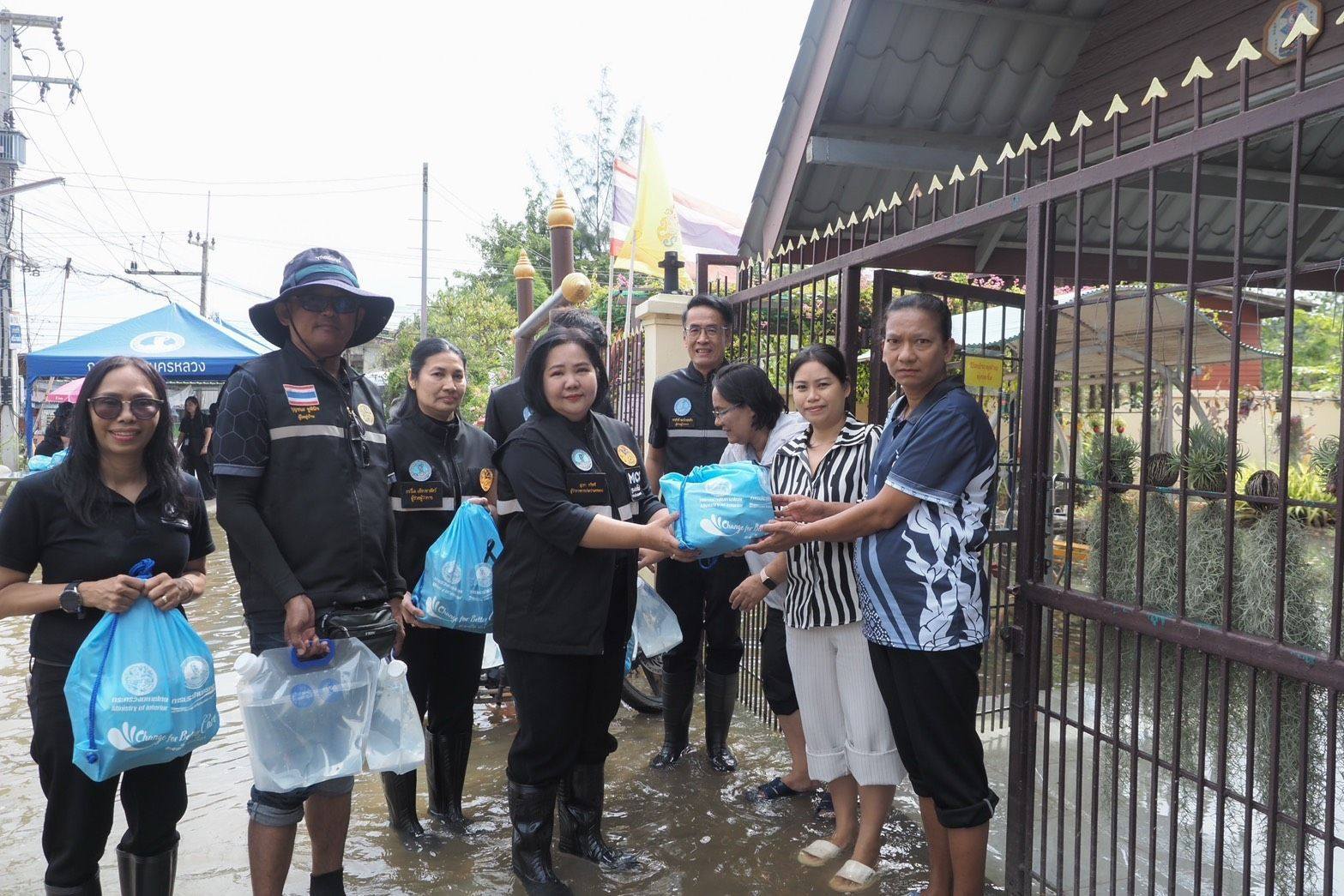 เมื่อวันที่ 20 พฤศจิกายน 2568 เวลา 10.30 น. นางสาวสุวรา ทวิชศรี ผู้ว่าการการประปานครหลวง (กปน.) นำคณะผู้บริหารและพนักงาน กปน. ลงพื้นที่มอบถุงยังชีพและน้ำดื่มให้กับประชาชนที่ประสบอุทกภัยในชุมชนตำบลบ้านกระแชงและตำบลเชียงรากใหญ่ ซึ่งเป็นพื้นที่ตั้งอยู่บริเวณใกล้สถานีสูบน้ำดิบสำแล จังหวัดปทุมธานี เพื่อบรรเทาความเดือดร้อนให้กับประชาชน ตามนโยบาย “บำบัดทุกข์ บำรุงสุข” ของกระทรวงมหาดไทย ที่มุ่งเน้นการดูแลประชาชนอย่างทั่วถึงและทันท่วงที ให้สามารถกลับมาดำเนินชีวิตได้ตามปกติโดยเร็ว