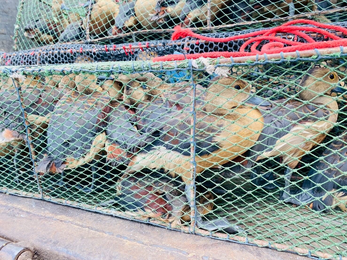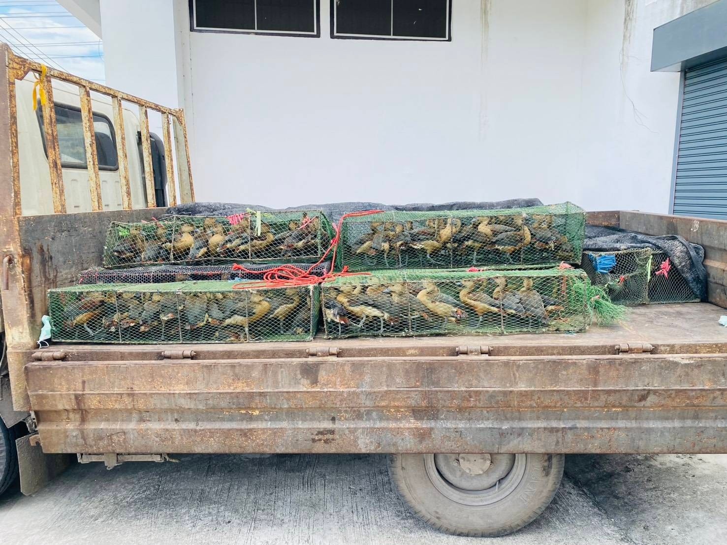ตรวจสอบพบ มีกรงตาข่าย จำนวน 21 กรง เป็ดแดงมีชีวิต จำนวน 413 ตัว ตาย 2 ตัว รวม 415 ตัว จากการสอบถามผู้ต้องหาให้การว่า ได้ไปรับซื้อเป็ดแดงทั้งหมดมาจากอำเภอสามง่าม จังหวัดพิจิตร ในราคาตัวละ 30 บาท และจะนำไปส่งขายต่อให้คนในพื้นที่อำเภอบ้านสร้าง จังหวัดปราจีนบุรี ในราคาตัวละ 60 บาท ซึ่งได้ทำมาแล้ว และครั้งนี้เป็นครั้งที่สอง