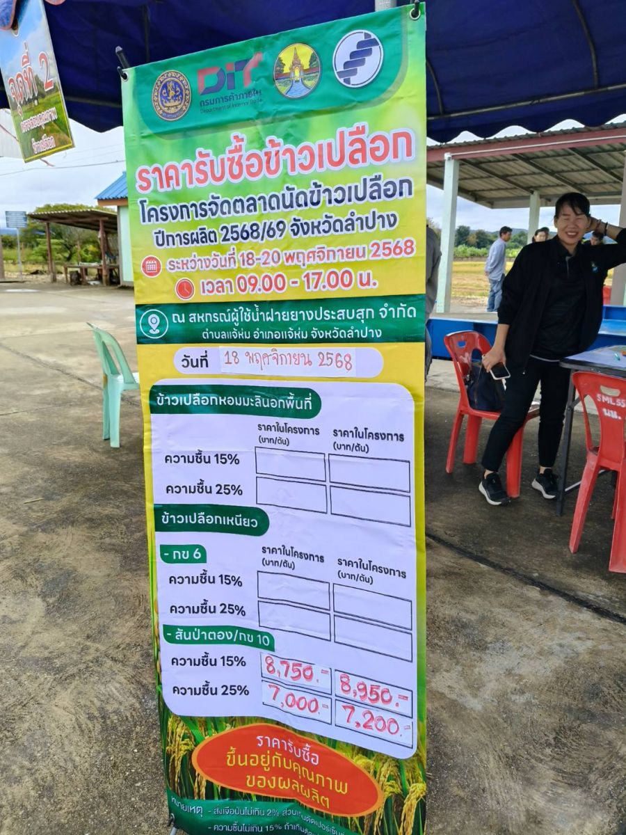 นายวิทยากร กล่าวต่อว่า “ในส่วนของการดำเนินโครงการตลาดนัดข้าวเปลือก กรมการค้าภายในร่วมกับสำนักงานพาณิชย์จังหวัด โดยเริ่มจัดมาตั้งแต่วันที่ 10 พฤศจิกายน 2568 และจะจัดต่อเนื่องรวมกว่า 50 ครั้งใน 32 จังหวัด ครอบคลุมภาคเหนือ ภาคตะวันออกเฉียงเหนือ และภาคกลาง จนถึงเดือนเมษายน 2569 โดยตลาดนัดข้าวเปลือกเป็นกลไกสำคัญที่ทำให้ผู้ประกอบการจากนอกพื้นที่เข้าไปรับซื้อถึงแหล่งผลิตของเกษตรกร ลดภาระค่าขนส่ง เพิ่มช่องทางขายโดยตรง และแก้ปัญหาบางพื้นที่ที่ไม่มีผู้รับซื้ออย่างมีประสิทธิภาพ