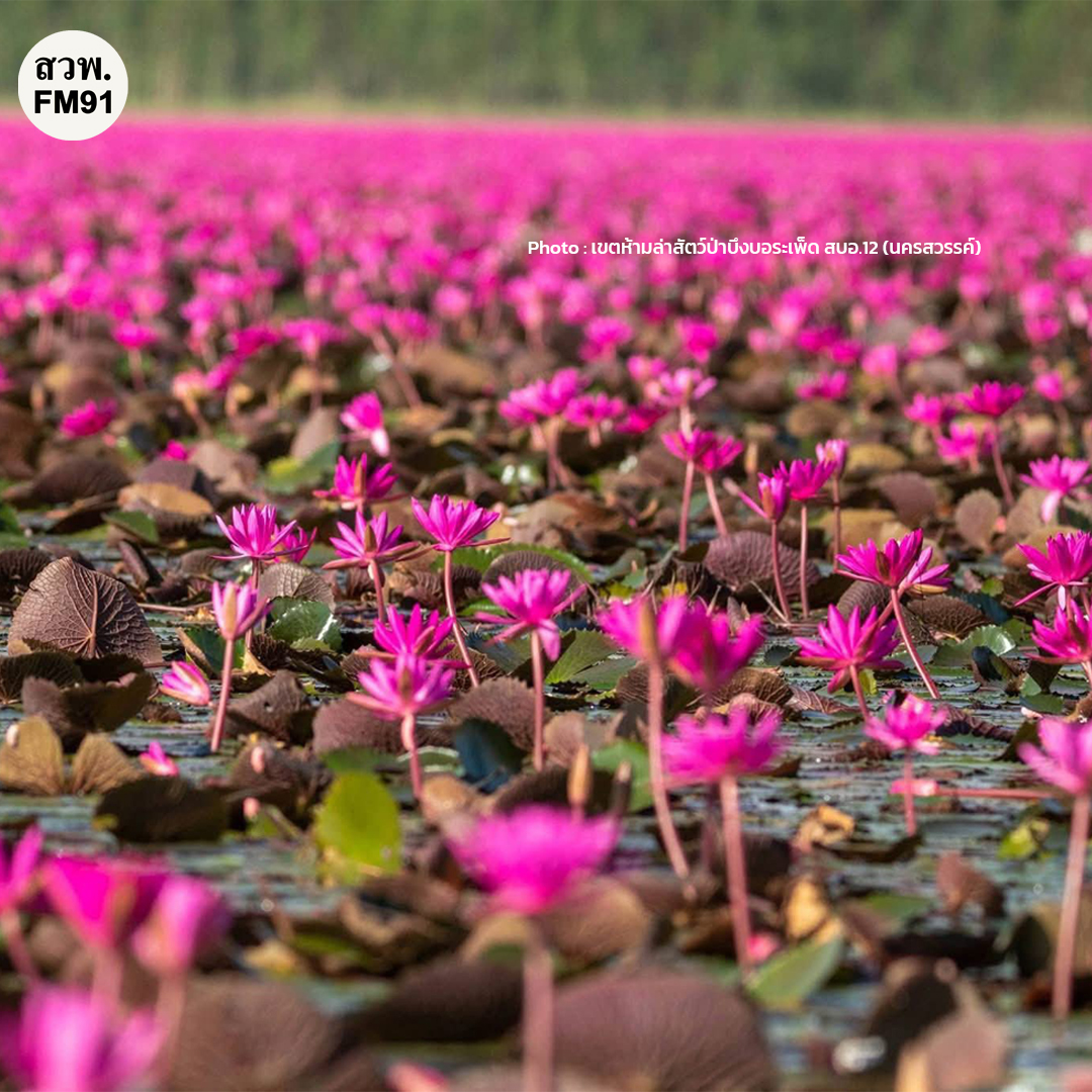 22 พฤศจิกายน 2568 ภาพของดอกบัวสีชมพูนับพันดอกที่บานสะพรั่งไปทั่วผืนบึงได้เผยตัวออกมาอย่างงดงาม นายจิระเดช บุญมาก ผู้อำนวยการส่วนอนุรักษ์สัตว์ป่า สำนักบริหารพื้นที่อนุรักษ์ที่ 12 (นครสวรรค์) ซึ่งทำหน้าที่หัวหน้าเขตห้ามล่าสัตว์ป่าบึงบอระเพ็ด ได้เผยแพร่ภาพความงามอันน่าประทับใจนี้ให้ประชาชนได้ชื่นชมบึงบอระเพ็ด เขตห้ามล่าสัตว์ป่าแห่งนี้ ตั้งอยู่ในพื้นที่จังหวัดนครสวรรค์ ถือเป็นบึงขนาดใหญ่ที่มีความสำคัญต่อระบบนิเวศและเป็นแหล่งน้ำที่สำคัญของชาวจังหวัด ในช่วงฤดูกาลที่เหมาะสม บึงแห่งนี้จะกลายเป็นทะเลบัวสีชมพูที่สวยงามตระการตา ดอกบัวแดงหรือบัวสีชมพูเหล่านี้จะผลิบานพร้อมกันเป็นจำนวนมาก สร้างทัศนียภาพที่สวยดุจภาพวาด