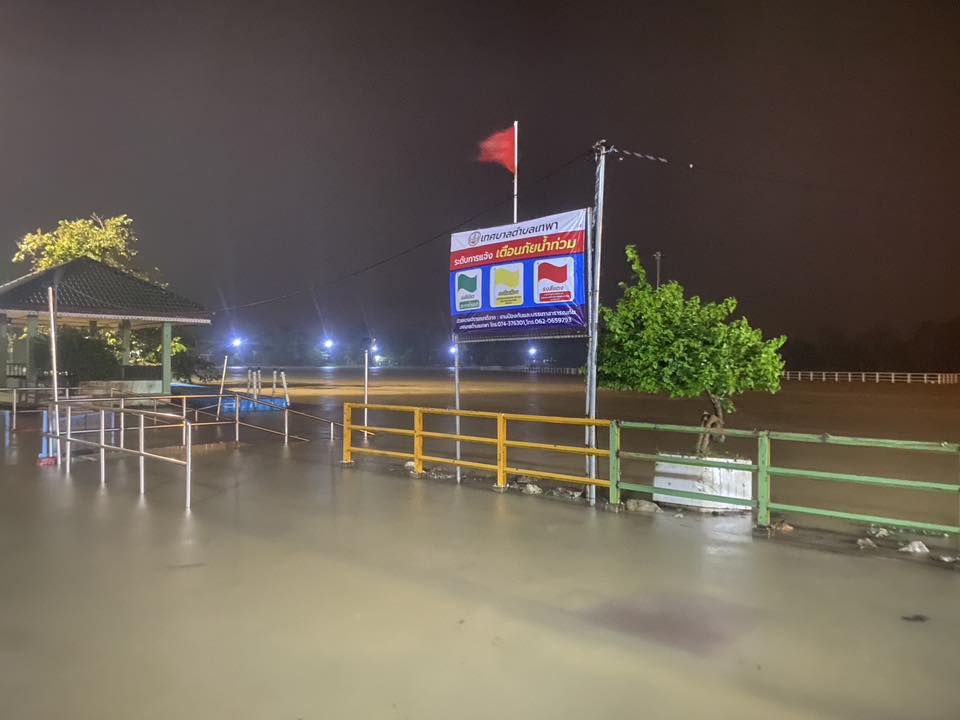 02.16 น. เทศบาลตำบลเทพา จังหวัดสงขลา รายงาน น้ำล้นตลิ่ง ริมคลองแม่น้ำเทพา บริเวณสะพานเทพาสันติสุข น้ำกำลังเพิ่มขึ้นเรื่อยๆครับ