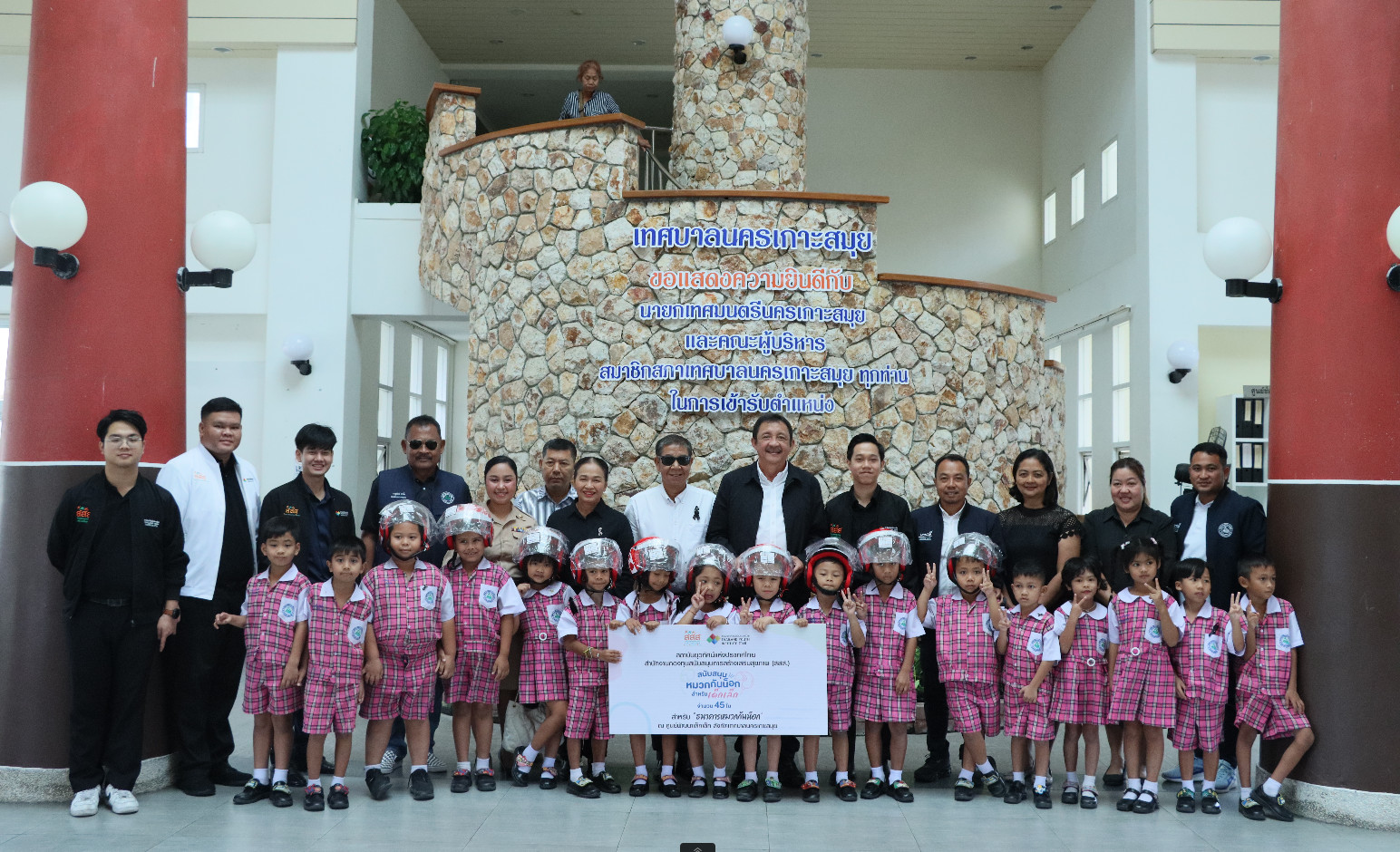 จากภาคเอกชน เพื่อนำมาจัดตั้ง “ธนาคารหมวกกันน็อก”สำหรับศูนย์พัฒนาเด็กเล็ก 9 แห่ง สังกัดเทศบาลนครเกาะสมุย ตั้งเป้าสวมหมวกนิรภัย 100%