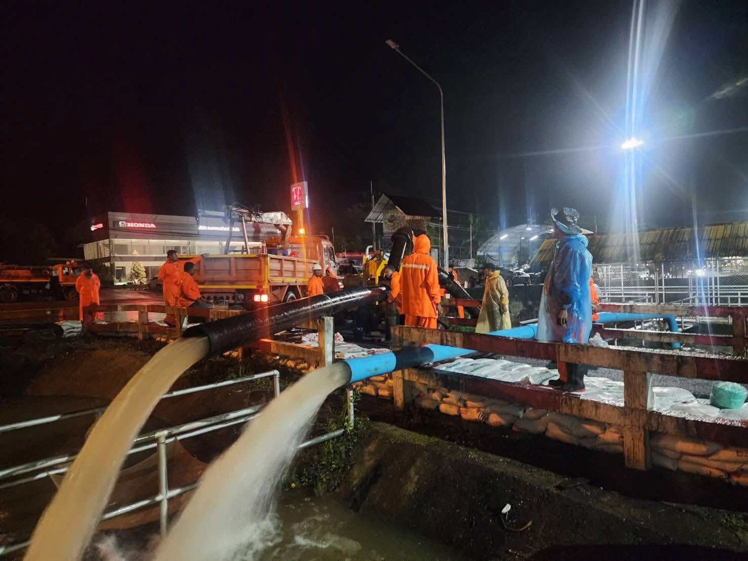เวลา 23.40 น. วันที่ 25 พฤศจิกายน 2568 เทศบาลนครยะลา ติดตั้งเครื่องสูบน้ำแบบเคลื่อนที่ เพิ่มอีก 2 เครื่องเพื่อเร่งเสริมกำลังสูบน้ำที่บริเวณสถานีสูบน้ำ PA (ท่าสาป)