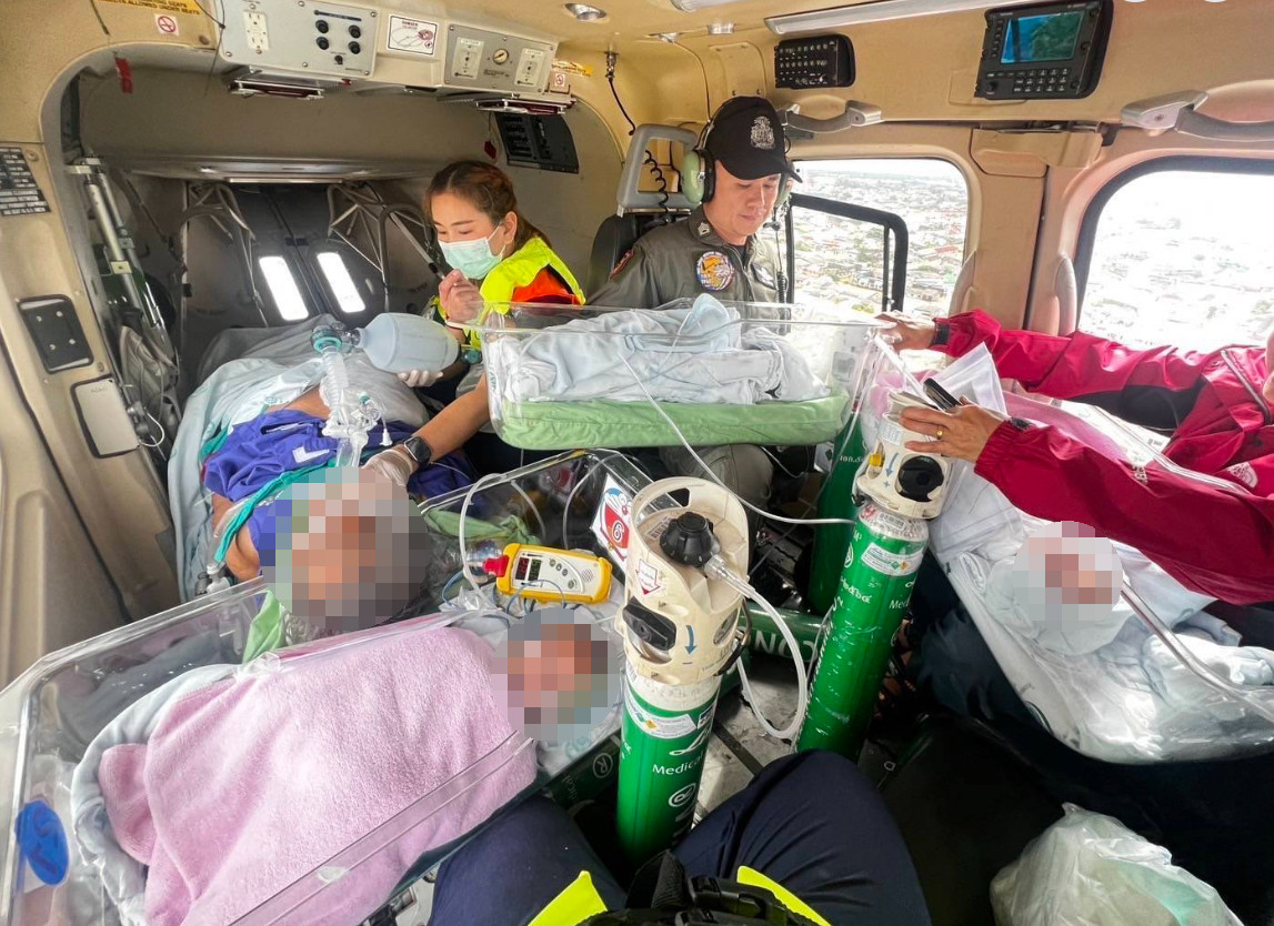 เครื่องบินกองบินตำรวจบินรับจากโรงพยาบาลหาดใหญ่ ไปยังลานจอด ฮ.ชั่วคราว อบจ.สงขลา แล้วส่งต่อโรงพยาบาลที่หมาย ภายใต้การดูแลของแพทย์และพยาบาลอย่างใกล้ชิด โดยทุกรายอาการปลอดภัย