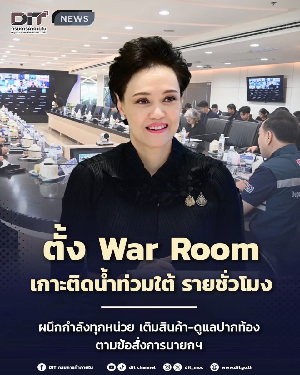 นางศุภจี สุธรรมพันธุ์ รัฐมนตรีว่าการกระทรวงพาณิชย์ เปิดเผยว่า จากสถานการณ์น้ำท่วมในหลายจังหวัดภาคใต้ซึ่งยังส่งผลกระทบเป็นวงกว้างต่อตัวประชาชน ชุมชนท้องถิ่น รวมถึงผู้ประกอบการและนิติบุคคลจำนวนมาก นายอนุทิน ชาญวีรกูล นายกรัฐมนตรี ได้มีข้อสั่งการชัดเจนให้ทุกกระทรวงเร่งจัดทำมาตรการบรรเทาความเดือดร้อนในทุกมิติ ทั้งด้านการเข้าถึงสินค้าอุปโภค–บริโภค การลดผลกระทบต่อธุรกิจ การฟื้นฟูพื้นที่เศรษฐกิจ และการสนับสนุนหน่วยงานปฏิบัติงานในพื้นที่ให้ทำงานได้อย่างต่อเนื่อง กระทรวงพาณิชย์โดยกรมการค้าภายใน จัดตั้ง War Room เป็นศูนย์ประสานกลางเพื่อติดตามสถานการณ์แบบรายชั่วโมง เชื่อมโยงข้อมูลจากสำนักงานพาณิชย์จังหวัดและทุกหน่วยที่เกี่ยวข้อง รวมถึงรวบรวมข้อมูลผลกระทบที่เกิดขึ้น เพื่อให้มาตรการช่วยเหลือถูกส่งต่อได้อย่างแม่นยำและเร็วที่สุด โดย War Room ได้ประชุมประเมินสถานการณ์อย่างต่อเนื่อง ทั้งเส้นทางการขนส่ง การเข้าถึงพื้นที่เสี่ยง การสำรองสินค้า และระดับความต้องการเฉพาะในแต่ละอำเภอ พร้อมเร่งให้ความช่วยเหลือให้ตรงจุด โดยเร็วที่สุด
