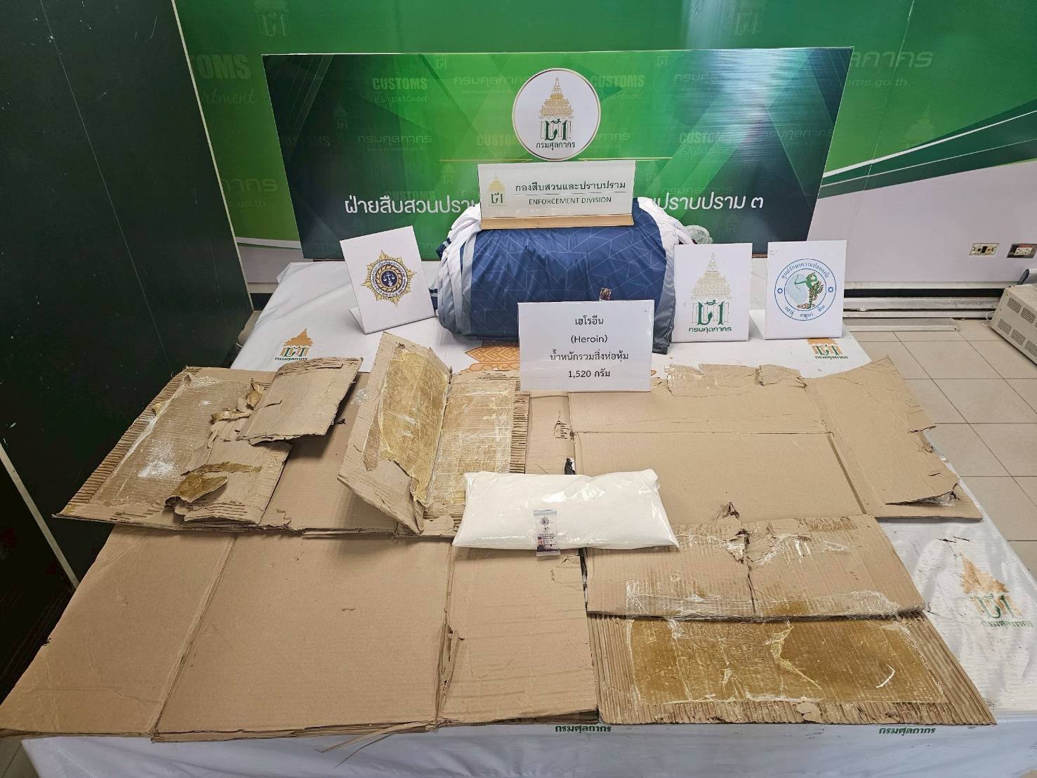 สืบเนื่องจากเจ้าหน้าที่ชุดปฏิบัติการ AITF ได้ตรวจสอบพัสดุขาออกระหว่างประเทศ ปลายทางประเทศออสเตรเลีย ณ เขตปลอดอากรท่าอากาศยานสุวรรณภูมิ พบความผิดปกติภายในกล่องพัสดุ ผลการตรวจสอบพบ เฮโรอีน น้ำหนัก 1.52 กิโลกรัม ซุกซ่อนอำพรางอยู่ในช่องว่างของผนังกล่องพัสดุ จึงได้ทำการตรวจยึดและประสานงานเพื่อสืบสวนขยายผลหาตัวผู้ส่งทันที