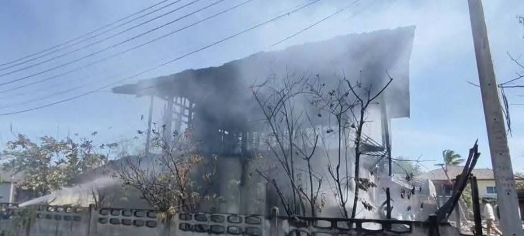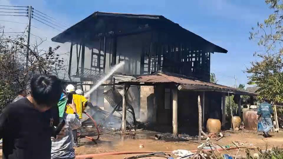 ไฟไหม้บ้านวอดทั้งหลัง หนุ่มสะดุ้งตื่นเจอไฟลวกศีรษะ ก่อนหนีตายออกจากบ้าน – เต่าถูกคลอกตาย 1 ตัว คาดสาเหตุจากก้นบุหรี่ จ.อุดรธานี