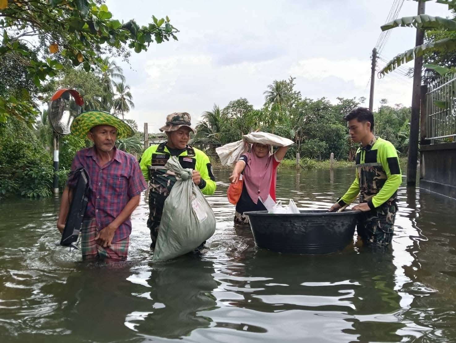 นอกจากภารกิจในการช่วยเหลือและเคลื่อนย้ายผู้ประสบภัยออกจากพื้นที่เสี่ยงแล้ว คณะเจ้าหน้าที่และจิตอาสายังได้ดำเนินการ แจกจ่ายสิ่งของบรรเทาทุกข์เบื้องต้น ประกอบด้วย อาหาร น้ำดื่ม และยาพาราเซตามอล ให้แก่ผู้ประสบภัยเพื่อเป็นการบรรเทาความเดือดร้อนในเบื้องต้น เจ้าหน้าที่ยังคงเฝ้าระวังสถานการณ์ในพื้นที่อย่างใกล้ชิด และพร้อมให้ความช่วยเหลือแก่ประชาชนจนกว่าสถานการณ์จะคลี่คลายและกลับสู่สภาวะปกติ