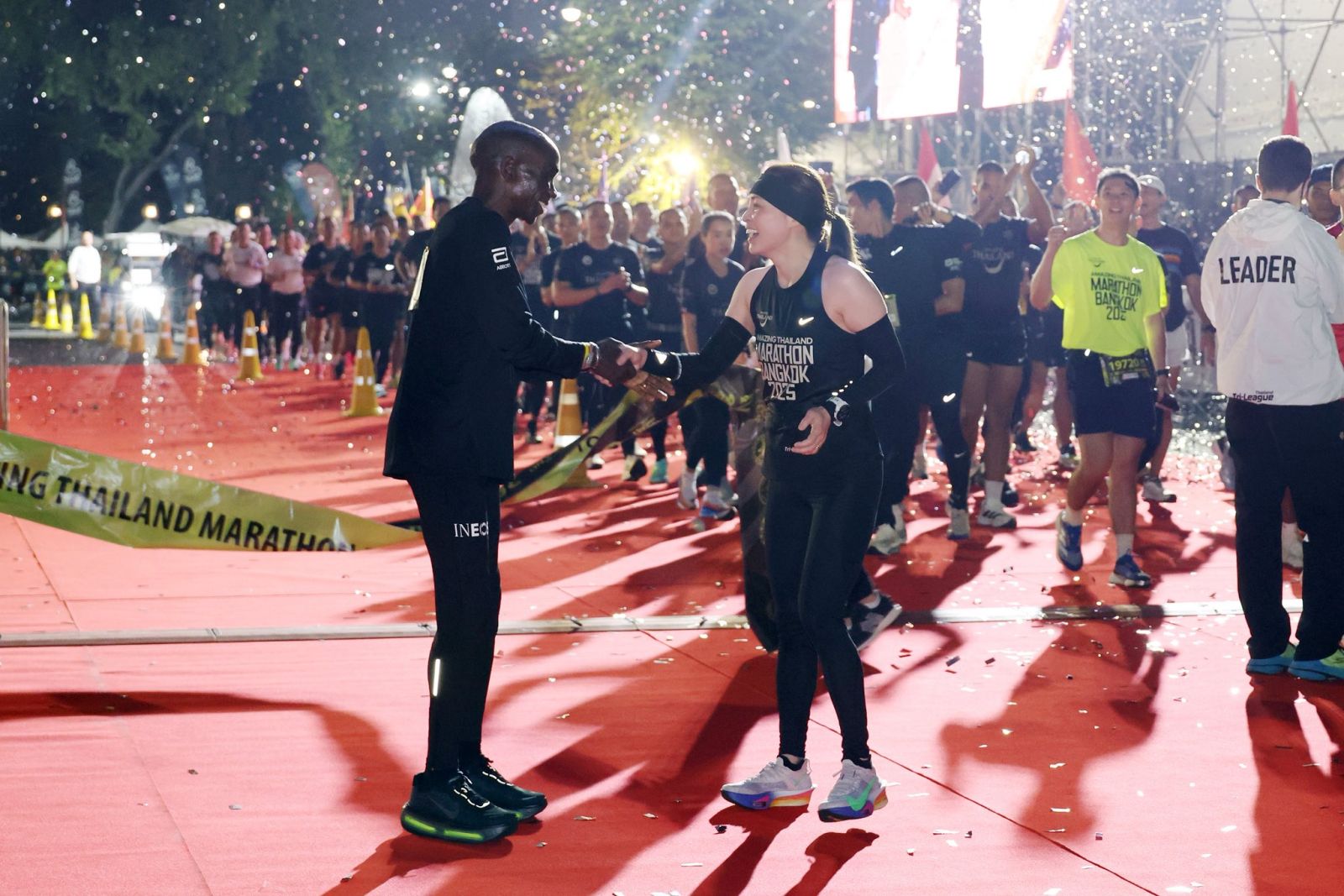 การนี้ทรงพระดำเนินไปยังจุดปล่อยตัว ทรงกดแตรลมปล่อยตัวนักวิ่ง ระยะฮาล์ฟมาราธอน ๒๑.๑ กม. และ ทรงวิ่งประเภทระยะฮาล์ฟมาราธอน ร่วมกับ นายเอเลียด คิปโชเก้ ตำนานนักวิ่งมาราธอนหนึ่งเดียวของโลก โดยมีนักวิ่งจากทั่วโลกสมัครเข้าร่วมวิ่งอีกจำนวน ๒๐,๐๐๐ คน จัดโดยกระทรวงการท่องเที่ยวและกีฬา การกีฬาแห่งประเทศไทย การท่องเที่ยวแห่งประเทศไทย กรุงเทพมหานคร สมาคมกีฬากรีฑาแห่งประเทศไทย และไทยแลนด์ไตรลีก
