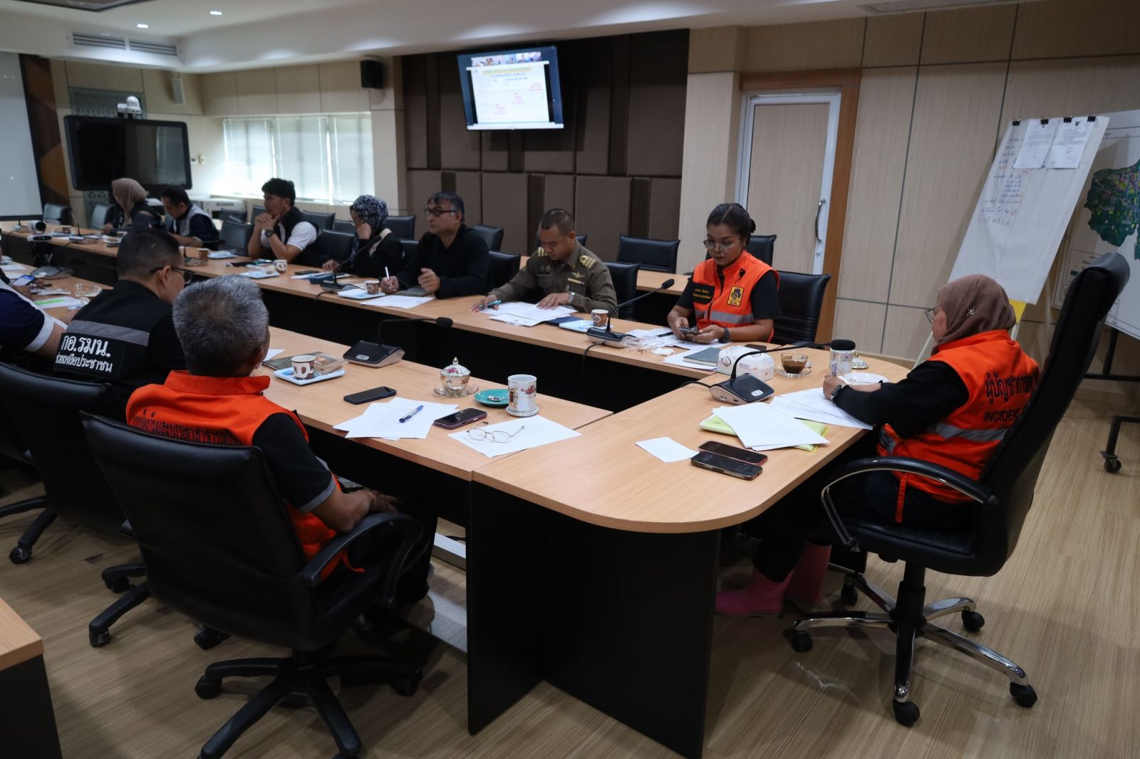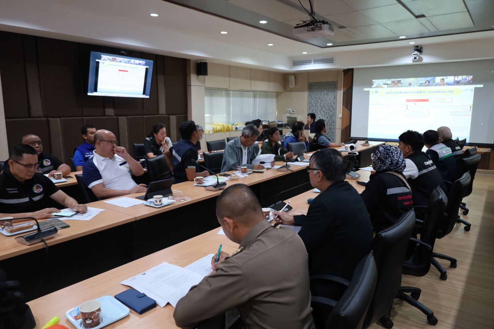 วันที่ 30 พ.ย.68 ที่ ห้องศูนย์ปฏิบัติการฉุกเฉิน EOC สำนักงานป้องกันและบรรเทาสาธารณภัยจังหวัดปัตตานี อาคาร 3 ขั้น 1 ศาลากลางจังหวัดปัตตานี นางพาตีเมาะ สะดียามู ผู้ว่าราชการจังหวัดปัตตานี เป็นประธานการประชุมศูนย์บัญชาการเหตุการณ์จังหวัดปัตตานีเพื่อป้องกันและแก้ไขปัญหาอุทกภัย วาตภัย และดินถล่ม ปี 2568 เพื่อติดตามสถานการณ์อุทกภัย และให้ความช่วยเหลือประชาชนที่ได้รับผลกระทบอย่างเร่งด่วน มี รองผู้ว่าราชการจังหวัดปัตตานี หัวหน้าสำนักงานป้องกันและบรรเทาสาธารณภัยจังหวัดปัตตานี ประชาสัมพันธ์จังหวัดปัตตานี หัวหน้าส่วนราชการ นายอำเภอ 12 อำเภอและหน่วยงานที่เกี่ยวข้อง ร่วมประชุมผ่าน Video Conference (วิดีโอคอนเฟอเรนซ์)