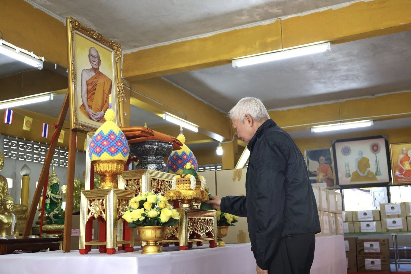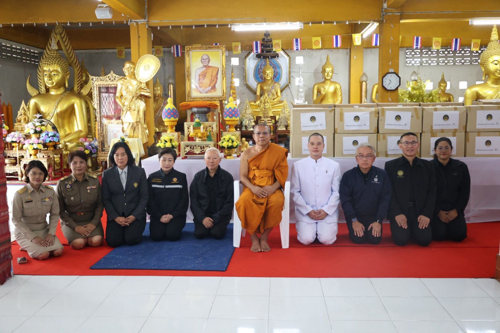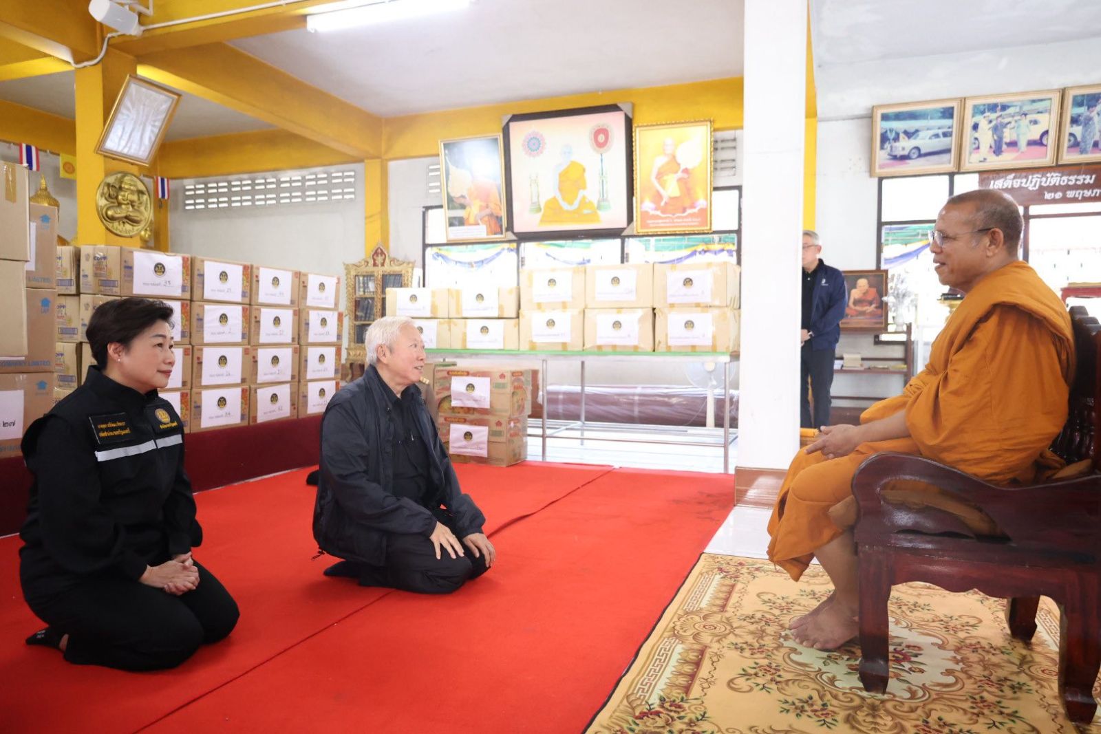 โอกาสนี้ นางยุพา ทวีวัฒนะกิจบวร ปลัดสำนักนายกรัฐมนตรี ได้ถวายผ้าไตรจีวรสมทบเพิ่มเติมอีก 500 ไตร รวมถึงสิ่งของจำเป็นต่าง ๆ ในนามสำนักนายกรัฐมนตรี เพื่อร่วมบรรเทาความเดือดร้อนแก่พระภิกษุ สามเณรและประชาชนในพื้นที่ประสบภัยด้วย