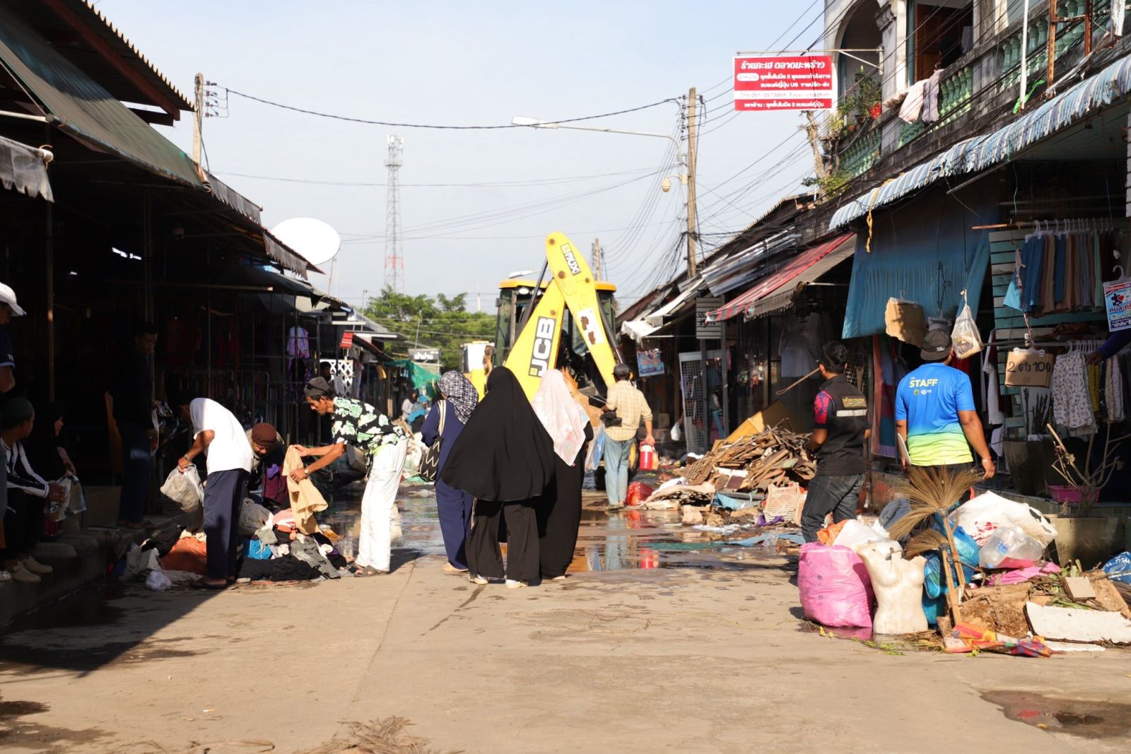 ล่าสุด ทางเทศบาลนครยะลาได้ส่งเจ้าหน้าที่เข้าดำเนินการจัดเก็บขยะและเศษซากเสื้อผ้า วัสดุต่างๆ ที่ถูกน้ำพัดพามารวมกัน เพื่อฟื้นคืนความสะอาดให้กับตลาดนัดแห่งนี้โดยเร็วที่สุด และให้พ่อค้าแม่ค้าสามารถกลับมาประกอบอาชีพได้ตามปกติ
