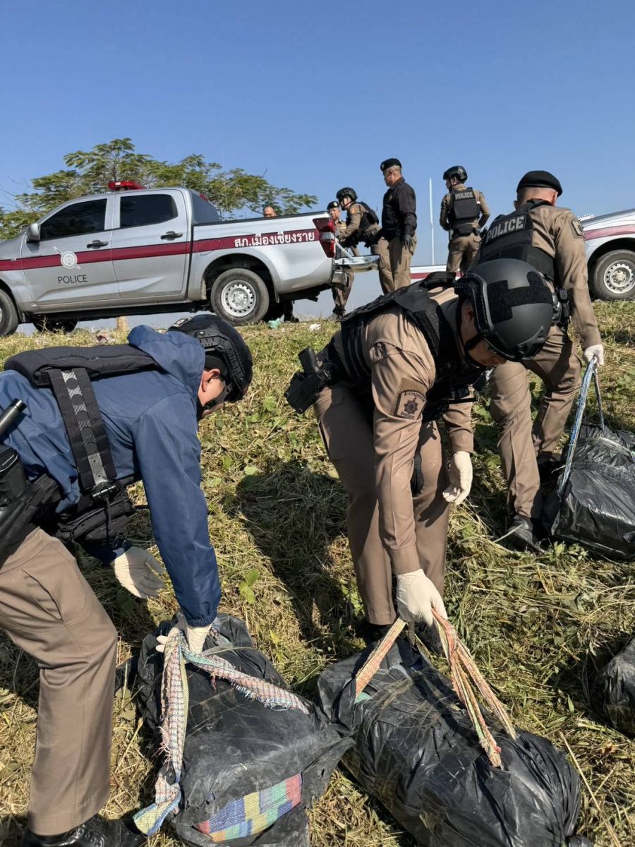 วันที่ 2 ธ.ค.68 เจ้าหน้าที่ตำรวจ สภ.เมืองเชียงราย ภายใต้การอำนวยการของ พล.ต.ต.มานพ เสนากูล ผบก.ภ.จว.เชียงราย พ.ต.อ.พิพัฒน์ นาระเดช และ พ.ต.อ.รัฐพล น้อยช่างคิด รอง ผบก.ภ.จว.เชียงราย พ.ต.อ.เกรียงศักดิ์ ตงศิริ ผกก.สภ.เมืองเชียงราย, พ.ต.ท.วิศนุ แปงยาแก้ว รอง ผกก.สส.สภ.เมืองเชียงราย และ พ.ต.ท.เธียรัช กัลยา รอง ผกก.ป.สภ.เมืองเชียงราย ซึ่งได้จัดกำลังเข้าตรวจสอบบริเวณถนนสาธารณะทางเข้าพิพิธภัณฑ์ศิลปะร่วมสมัย เมืองเชียงราย ตำบลริมกก อำเภอเมืองเชียงราย หลังจากได้รับแจ้งว่าพบกระสอบคล้าย กับที่ขบวนการค้ายาเสพติดใช้ วางทิ้ง กระจัดกระจายอยู่ในทุ่งนา บริเวณดังกล่าว