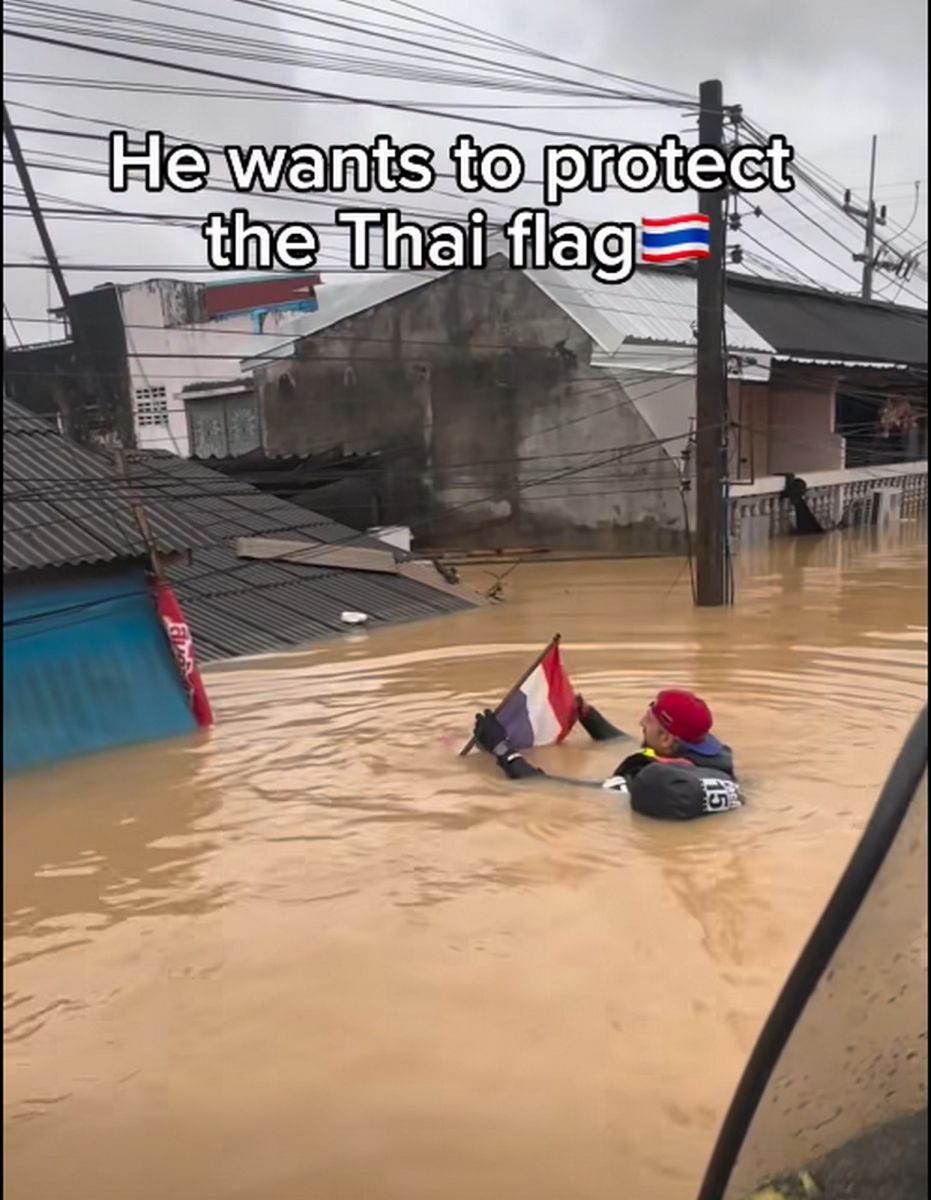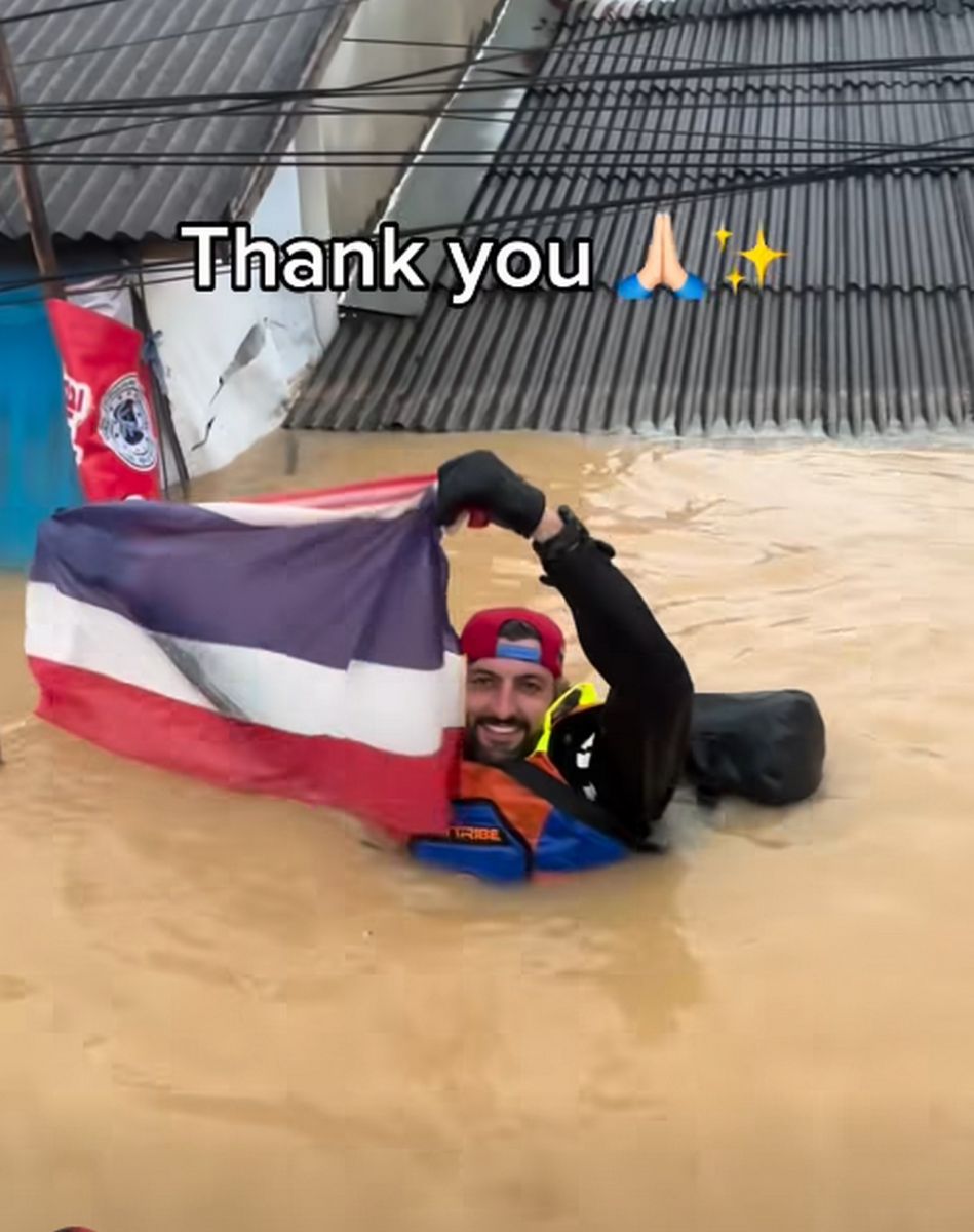 3 ธันวาคม 2568 ชาวเน็ตแชร์เรื่องราวประทับใจจาก ผู้ใช้เฟซบุ๊ก Oraphan Ozzawin หรือ ครูน้องน้ำ อรพรรณ ธีรพัฒน์พาณิชย์ นักกีฬาเจ็ตสกีหญิงดีกรีแชมป์โลก ได้ลงพื้นที่ช่วยเหลือผู้ประสบภัยน้ำท่วมในอำเภอหาดใหญ่ จังหวัดสงขลา พร้อมทีมอาสาและนักแข่งเจ็ตสกีชาวรัสเซีย โดยได้โพสต์คลิปขณะชายชาวต่างชาติว่ายน้ำไปงมธงชาติไทยที่จมน้ำขึ้นมา