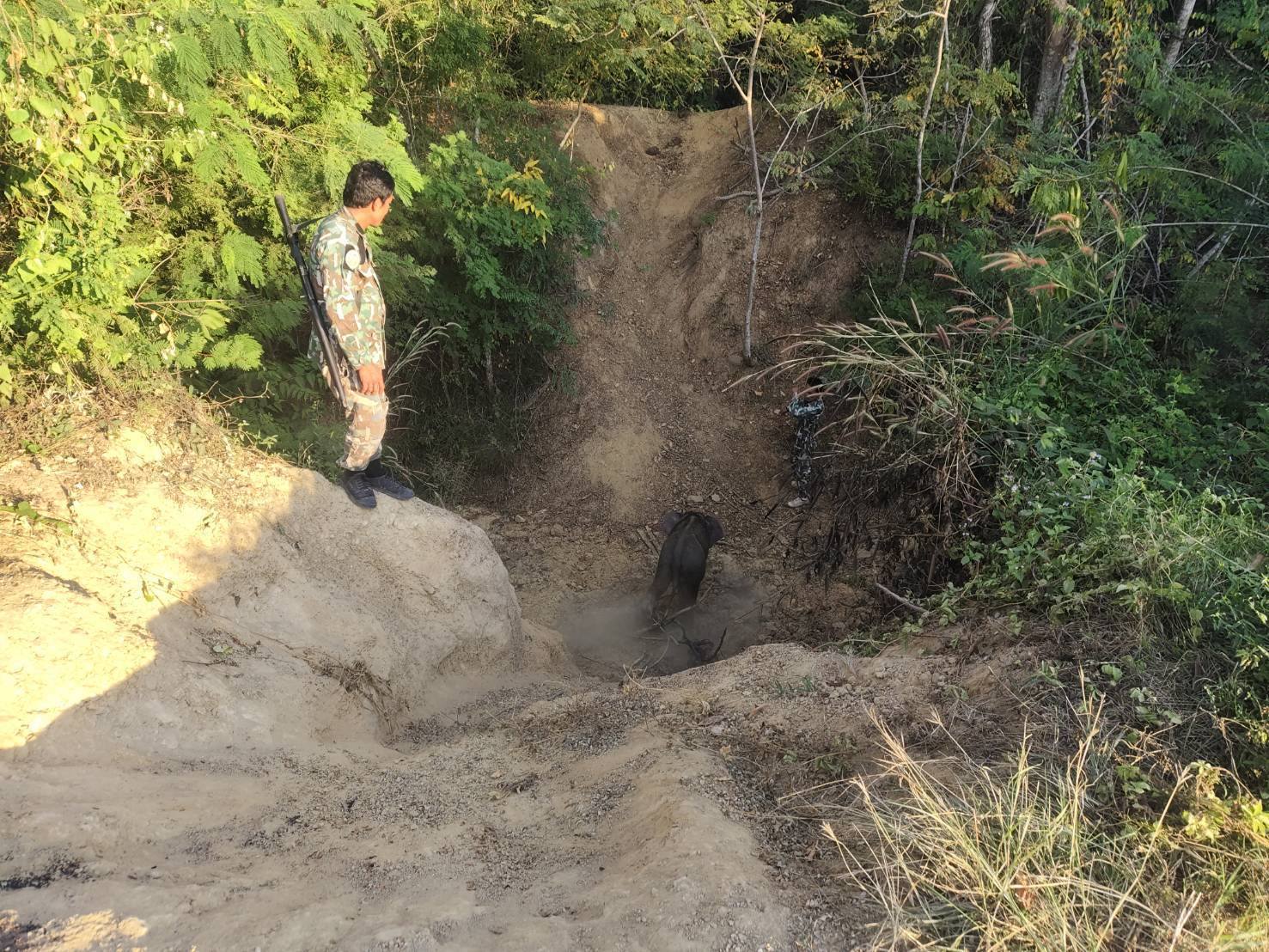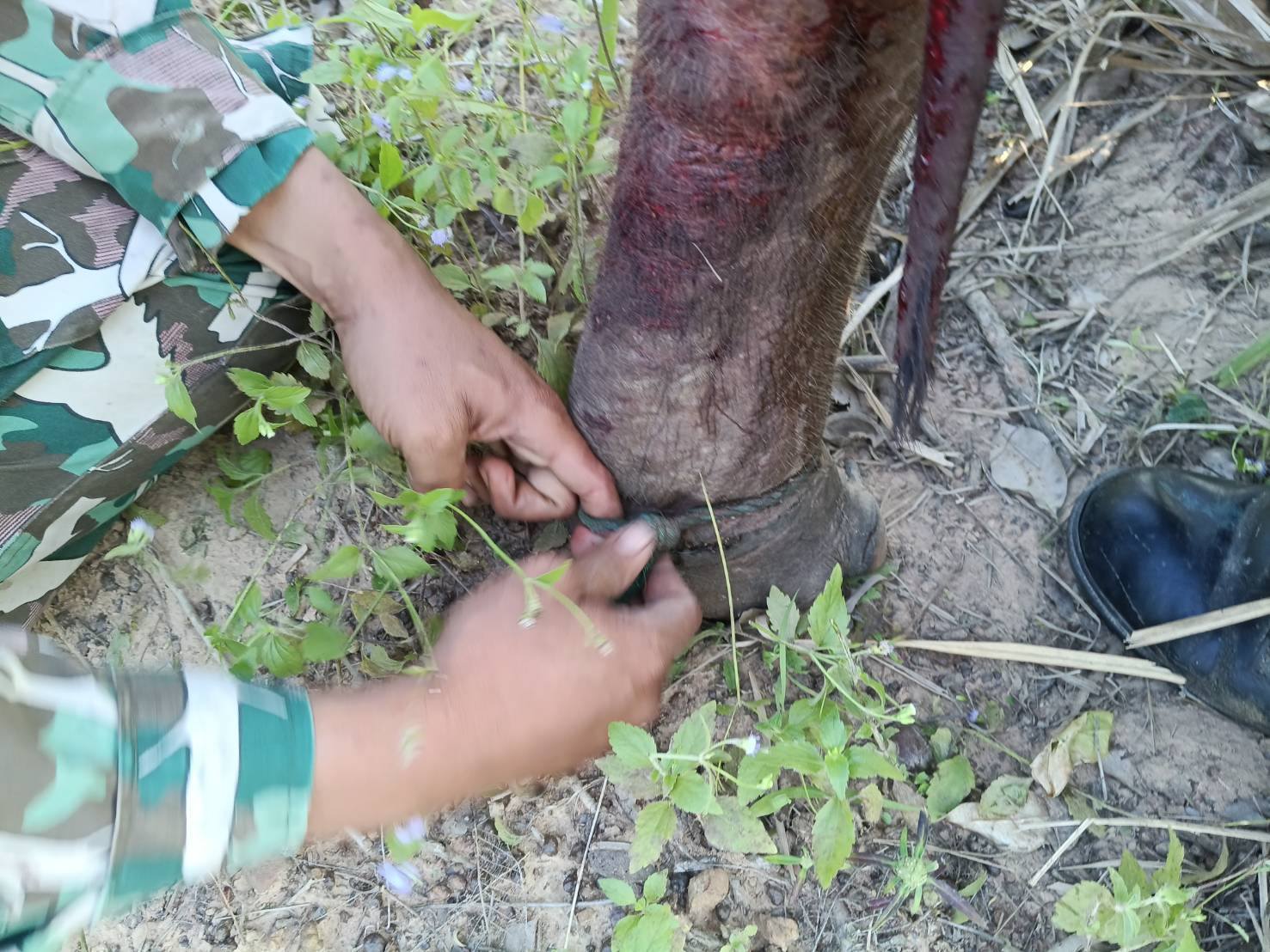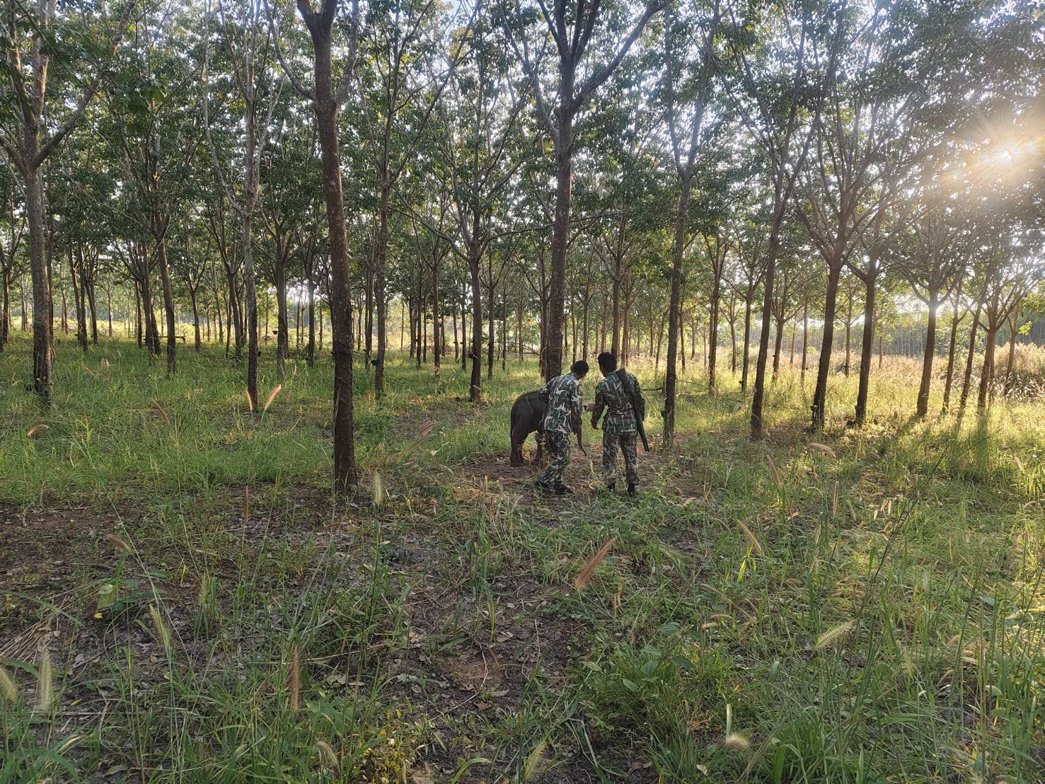 ช่วงบ่ายวันเดียวกัน เวลาประมาณ 16.30 น. ชุดเฝ้าระวังช้างป่า ชุดที่ 3 ได้รับแจ้งพบลูกช้างอีกตัวพลัดหลงฝูงเข้าไปอยู่ในบริเวณสวนยางพารา หมู่ 9 บ้านท่าเต้น ตำบลพระเพลิง อำเภอเขาฉกรรจ์ ห่างจากแนวเขตรักษาพันธุ์สัตว์ป่าเพียง 100 เมตร โดยลูกช้างตัวดังกล่าวติดบ่วงเชือกบริเวณขาหลังซ้าย เจ้าหน้าที่ได้เข้าช่วยเหลือทันที โดยตัดเชือกออกจากขาลูกช้างและนำส่งกลับเข้าสู่พื้นที่เขตรักษาพันธุ์สัตว์ป่าเรียบร้อยแล้ว
