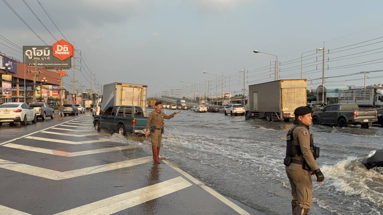 ช่วงบ่ายวันนี้ มีรายงานว่าบางพื้นที่ของเส้นทางถนนพระราม 2 เกิดน้ำท่วมขังจากน้ำทะเลหนุนต่อเนื่อง ทำให้การจราจรชะลอตั วและบางช่วงมีรถเล็กผ่านได้ลำบาก เจ้าหน้าที่ตำรวจจราจรและตำรวจทางหลวงประจำพื้นที่ได้ลงพื้นที่ตั้งแต่ช่วงเกิดเหตุ เพื่อช่วยประชาชนเบี่ยงช่องทาง ให้คำแนะนำเรื่องความเร็ว รวมถึงเฝ้าระวังเหตุอันตรายที่อาจเกิดจากน้ำท่วม โดยขอให้ผู้ใช้รถใช้ถนนเพิ่มความระมัดระวัง และหากเป็นไปได้ให้ประเมินเส้นทางล่วงหน้าเพื่อหลีกเลี่ยงจุดที่มีน้ำขัง พร้อมแนะนำเส้นทางเลี่ยงให้กับผู้ขับขี่