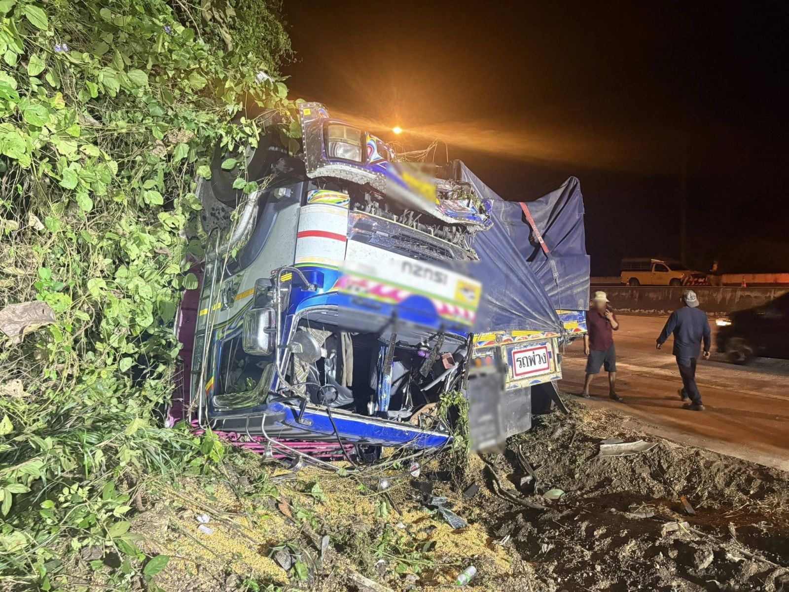 รถบรรทุกเบียร์ชนกับรถบรรทุกข้าวโพด บริเวณทางลงดอยขุนตาล จนท.เร่งช่วยเหลือผู้ได้รับบาดเจ็บ จ.ลำพูน