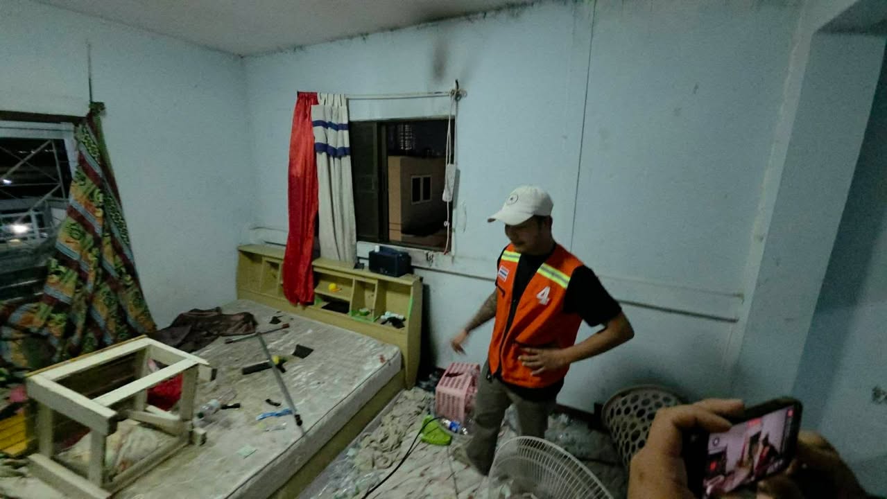 ด้าน ชายวัย 30 ปี ขับวินมอเตอร์ไซค์ที่พักในอาคารเดียวกัน เล่าว่า ตั้งแต่เช้าได้ยินเสียงทะเลาะกันเรื่อย ๆ จนช่วงหัวค่ำได้ยินเสียงของตกกระแทกพื้น จึงขึ้นไปดูและพบว่าผู้ก่อเหตุใช้แก๊สกระป๋องกำลังจุดไฟเผาผ้าม่าน มืออีกข้างถือมีด และยังนำสายไฟมาผูกกับราวผ้าม่านเหมือนเตรียมผูกคอ ทำให้ตนต้องวิ่งหลบออกมาแล้วแจ้งตำรวจทันที