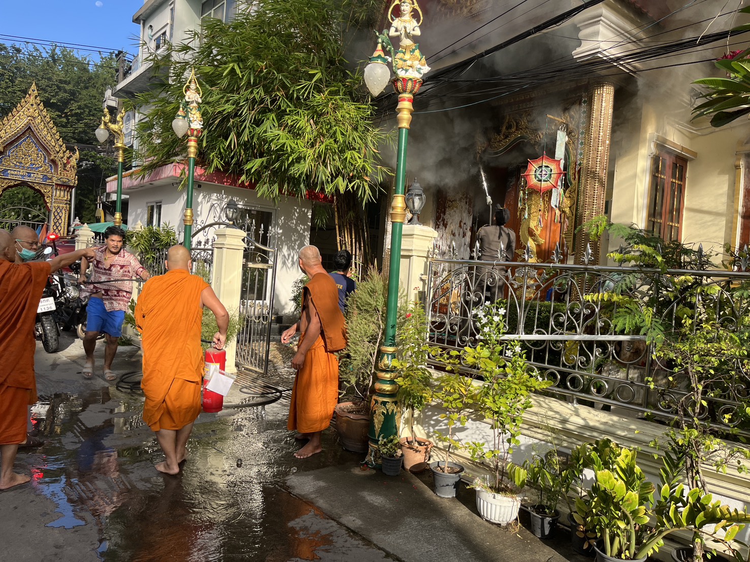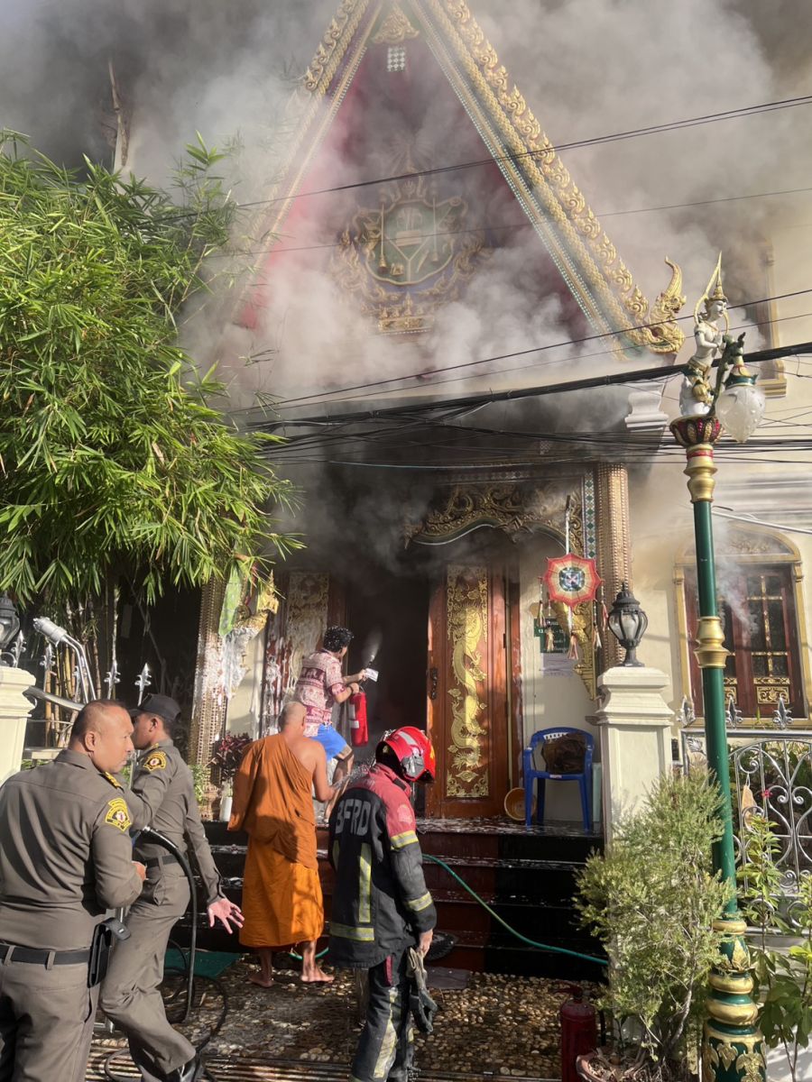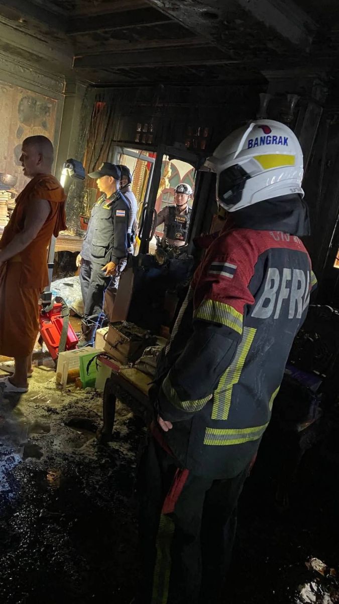 ลักษณะที่เกิดเหตุเป็นกุฏิครึ่งตึกครึ่งไม้ 3 ชั้น ต้นเพลิงเกิดขึ้นที่ชั้น 1 (ภายในห้องโถง) เพลิงลุกไหม้โถงห้องพระเสียหายหมดทั้งห้อง พื้นที่เพลิงไหม้เสียหายโดยประมาณ 200 ตารางเมตร รถดับเพลิงใช้น้ำทำการดับเพลิงสงบ