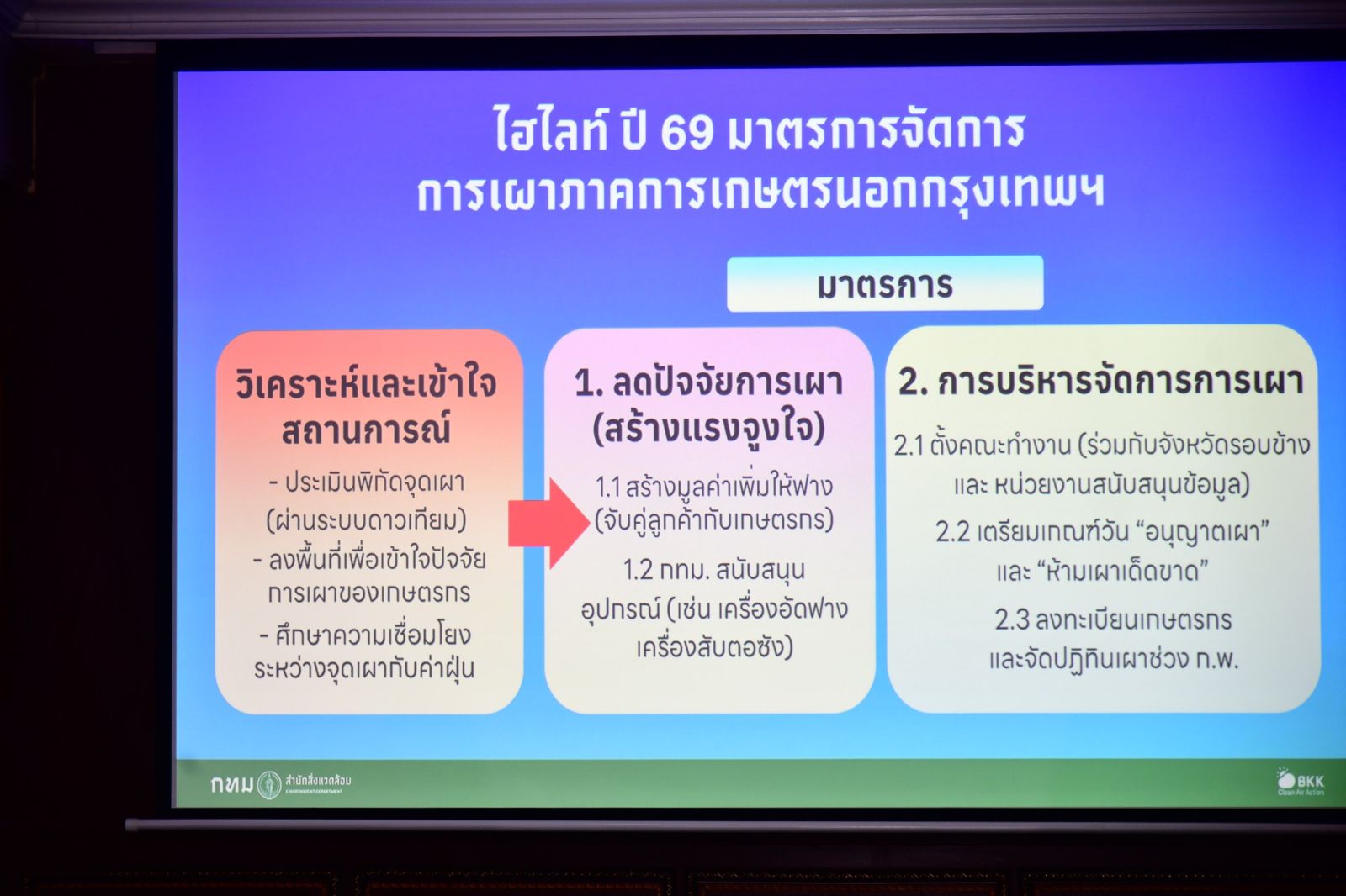หารือแนวทางลดการเผาในพื้นที่เกษตร ในพื้นที่เป้าหมาย 5 จังหวัดต้นลม ประกอบด้วย นครนายก ปราจีนบุรี ฉะเชิงเทรา ชลบุรี สระแก้ว รวมถึงควบคุม และลดการเผาในพื้นที่ป่า เพื่อควบคุมและลดมลพิษในพื้นที่เมือง