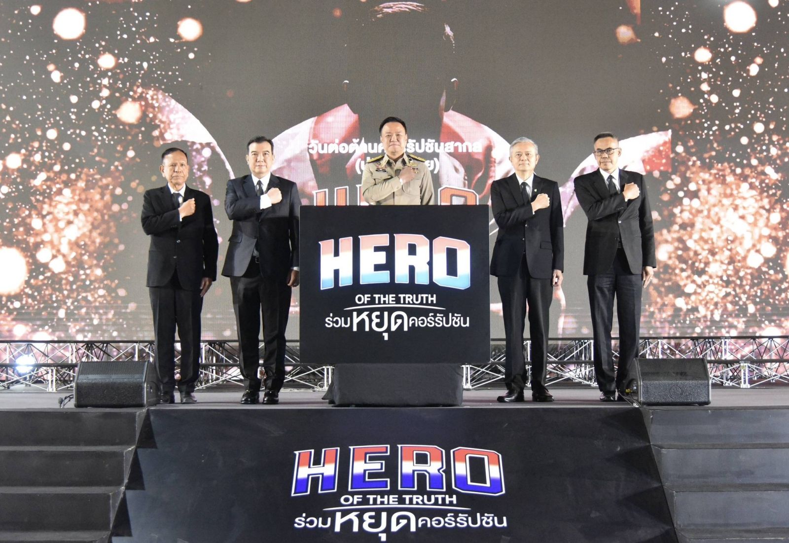 นายกฯ ขอบคุณทุกภาคส่วนที่ร่วมมือและทุ่มเทในการแก้ไขปัญหาการทุจริต ตอกย้ำจุดยืนของคนไทยว่า “ไม่ทำ ไม่ทน และไม่เฉย” ต่อการทุจริตอีกต่อไป จากนั้น นายกฯ ได้นำประกาศเจตนารมณ์วันต่อต้านคอร์รัปชันสากล พร้อมเปิดสัญลักษณ์ “HERO OF THE TRUTH ร่วมหยุดคอร์รัปชัน” เพื่อแสดงเจตนารมณ์แน่วแน่ของทุกหน่วยงานในการต่อต้านการทุจริตคอร์รัปชันในทุกรูปแบบ