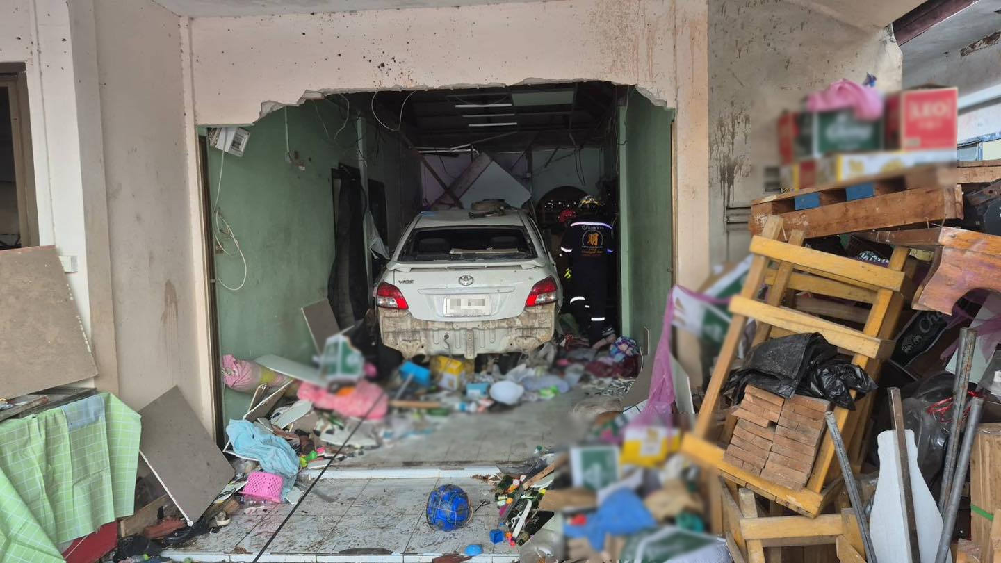 วันที่ 9 ธันวาคม 2568 ศูนย์วิทยุหน่วยกู้ภัยสว่างบริบูรณ์ธรรมสถานเมืองพัทยา รับแจ้งเหตุรถยนต์พุ่งชนบ้านเรือนประชาชน ภายในหมู่บ้านแห่งหนึ่ง ในพื้นที่ หมู่ 5 ตำบลหนองปรือ อำเภอบางละมุง จังหวัดชลบุรี ส่งผลให้ผนังกำแพงบ้านถล่ม และมีผู้ติดค้างภายในบ้าน