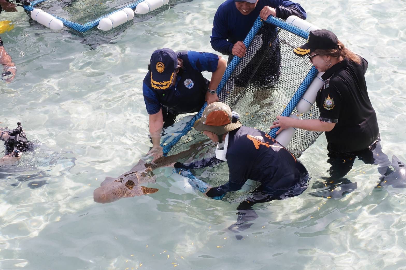 ดร.ปิ่นสักก์ สุรัสวดี อธิบดีกรมทรัพยากรทางทะเลและชายฝั่ง กล่าวว่า “ฉลามเสือดาวคือหนึ่งในสิ่งมีชีวิตที่มีบทบาทสำคัญต่อระบบนิเวศแนวปะการัง รักษาความสมดุลของสิ่งมีชีวิต และเป็นแรงดึงดูดนักท่องเที่ยวให้มาดำน้ำ สร้างรายได้และความรักในท้องทะเลไทย กรมทรัพยากรทางทะเลและชายฝั่งในฐานะหน่วยงานหลักด้านการศึกษา วิจัย และการอนุรักษ์ทรัพยากรทางทะเล ได้ดำเนินการร่วมกับภาคีอนุรักษ์โครงการ StAR ประเทศไทย ตั้งแต่การรับลูกฉลามเสือดาวจากอควาเรีย ภูเก็ต มาอนุบาลและฝึกฝนลูกฉลามเสือดาวให้กินอาหารเลียนแบบธรรมชาติในคอกทะเล ณ เกาะไม้ท่อน เพื่อให้ฉลามเสือดาวมีความพร้อมก่อนจะปล่อยคืนสู่ธรรมชาติ ทีมสัตว์แพทย์ของกรมยังได้ตรวจเช็คสุขภาพและผ่าตัดติดตั้งเครื่องส่งสัญญาณเสียงในฉลามเสือดาวร่วมกับทีมสัตวแพทย์จากโอเชียนปาร์ค ฮ่องกง นอกจากนี้ เราได้ทำงานร่วมกับกรมอุทยานแห่งชาติ สัตว์ป่า และพันธุ์พืช ในการติดตั้งและเก็บข้อมูลจากเครื่องรับสัญญาณเสียงใต้น้ำ เพื่อให้สามารถติดตามพฤติกรรม การเคลื่อนที่ และอัตราการรอดหลังปล่อยฉลามเสือดาวคืนสู่ธรรมชาติ การปล่อยฉลามเสือดาวคืนสู่ธรรมชาติในวันนี้ เป็นการแสดงพลังความร่วมมือของทุกภาคส่วน ทั้งภาครัฐ เอกชน ภาคประชาสังคม รวมถึงภาคประชาชน อย่างชุมชนนักดำน้ำ ที่จะคืนชีวิตให้กับท้องทะเลไทย และส่งต่อความสมดุลของระบบนิเวศให้กับคนรุ่นต่อไป”