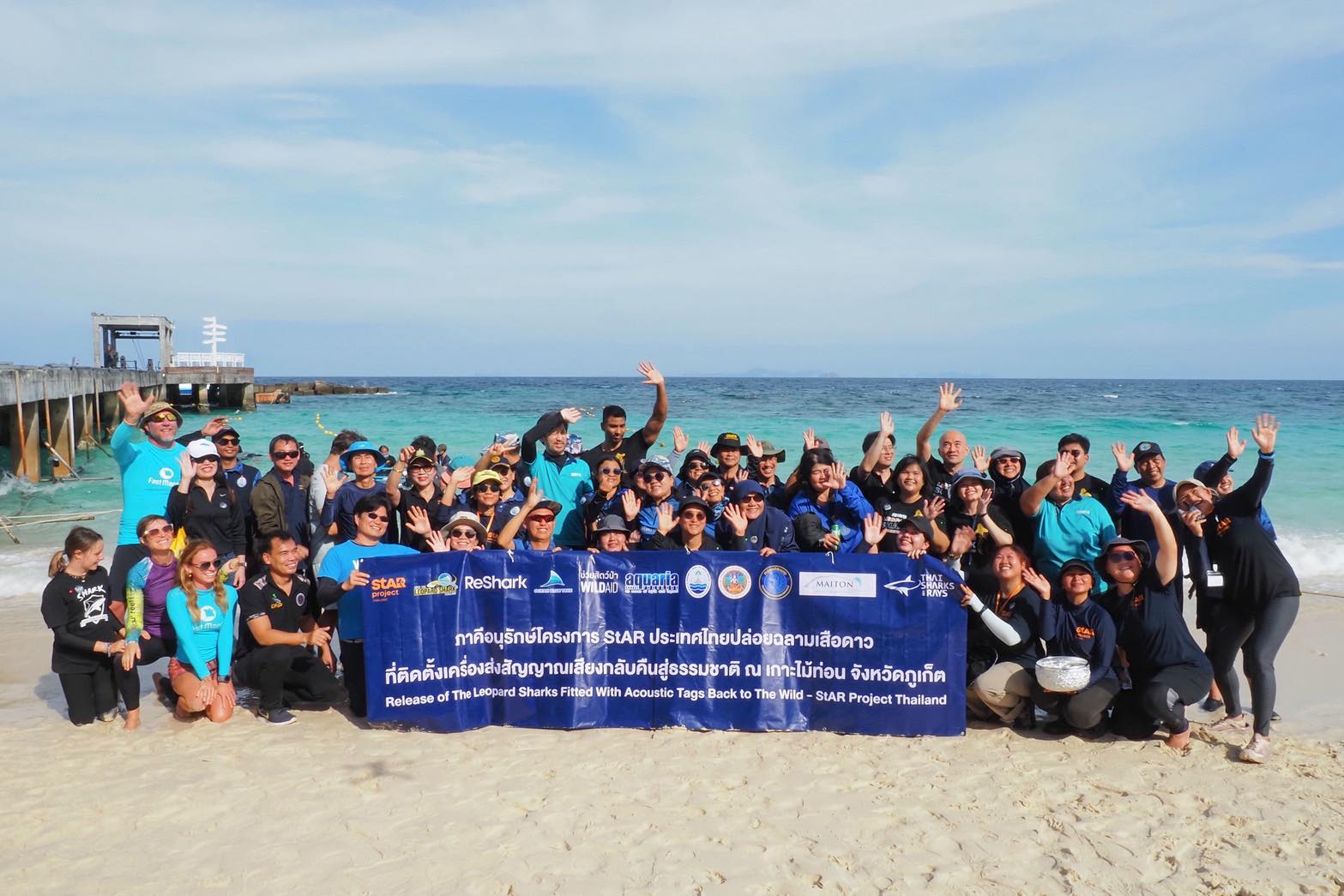 วันที่ 8 ธันวาคม 2568 ภาคีโครงการอนุรักษ์และฟื้นฟูประชากรฉลามเสือดาว หรือโครงการ StAR ประเทศไทย (Stegostoma tigrinum Augmentation and Recovery Project Thailand) ร่วมปล่อยฉลามเสือดาวอินโด-แปซิฟิก (Indo-Pacific leopard shark: Stegostoma tigrinum) ที่ติดตั้งเครื่องส่งสัญญาณเสียง (Acoustic tag) ติดตามการเคลื่อนที่คืนสู่ธรรมชาติจำนวน 4 ตัว จากพื้นที่โรงแรมเกาะไม้ท่อน ซึ่งตั้งอยู่ที่เกาะห่างจากชายฝั่งจังหวัดภูเก็ตไปทางตะวันออกเฉียงใต้ราว 9 กิโลเมตร ถือเป็นอีกหนึ่งก้าวสำคัญของโครงการ StAR ประเทศไทยที่มีเป้าหมายในการฟื้นฟูประชากรฉลามเสือดาว สัตว์ป่าคุ้มครองของไทยที่ใกล้สูญพันธุ์ เพื่อช่วยฟื้นคืนจำนวนประชากรและความสมดุลของระบบนิเวศแนวปะการังของทะเลไทย โดยภาคีโครงการได้ปล่อยฉลามเสือดาวจำนวน 3 ตัวแรก เมื่อเดือนกันยายนที่ผ่านมา รวมตลอดทั้งปี 2568 ปล่อยฉลามเสือดาวกลับคืนสู่ธรรมชาติแล้ว 7 ตัว โดยฉลามเสือดาวทั้งสี่ตัว ได้แก่ ไม้ท่อน (Maiton) โฮป (Hope) สปอต (Spot) และ โทตี้ (Toty) ปัจจุบันมีอายุเฉลี่ยประมาณเกือบสองปีและมีความยาวตลอดตัวประมาณ 100-140 เซนติเมตร ฉลามเสือดาวของโครงการทั้งหมดเกิดจากความสำเร็จของโครงการเพาะพันธุ์ฉลามเสือดาวของอควาเรีย ภูเก็ต (Aquaria Phuket) พิพิธภัณฑ์สัตว์น้ำเอกชนในจังหวัดภูเก็ต และได้รับการอนุบาลโดยเจ้าหน้าที่ดูแลฉลามโครงการ StAR ประเทศไทย เพื่อปรับตัวให้คุ้นเคยกับสภาพแวดล้อมทางทะเลตามธรรมชาติและฝึกการหาอาหารด้วยตนเองในพื้นที่คอกทะเลบนเกาะไม้ท่อน ในช่วงก่อนการปล่อยคืนสู่ธรรมชาติ ตัวแทนภาคีโครงการ StAR ประเทศไทย ได้ร่วมกันอวยพรโดยเทน้ำทะเลที่มีกลีบดอกไม้ลงสู่ผืนน้ำ เพื่อเป็นสัญลักษณ์แห่งความปรารถนาดีให้ฉลามทั้งสี่ตัว เดินทางกลับคืนสู่ถิ่นอาศัยตามธรรมชาติอย่างปลอดภัยและแข็งแรง