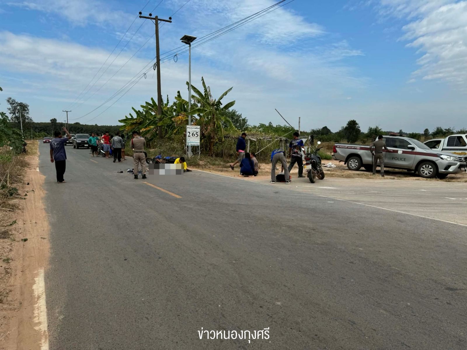 เมื่อเวลา 13.20 น. วันที่ 10 ธันวาคม 2568 พ.ต.ท.อุทัย พันธ์ทอง สว.(สอบสวน) สภ.หนองกุงศรี จ.กาฬสินธุ์ ได้รับแจ้งเหตุอุบัติเหตุรถจักรยานยนต์ชนกับรถบรรทุก มีทั้งผู้บาดเจ็บและผู้เสียชีวิต บนถนนสายบ้านดงมูล - บ้านศรีสว่าง บริเวณหน้าลานรับซื้อหัวมันสำปะหลัง ในพื้นที่ ต.หนองบัว อ.หนองกุงศรี จ.กาฬสินธุ์