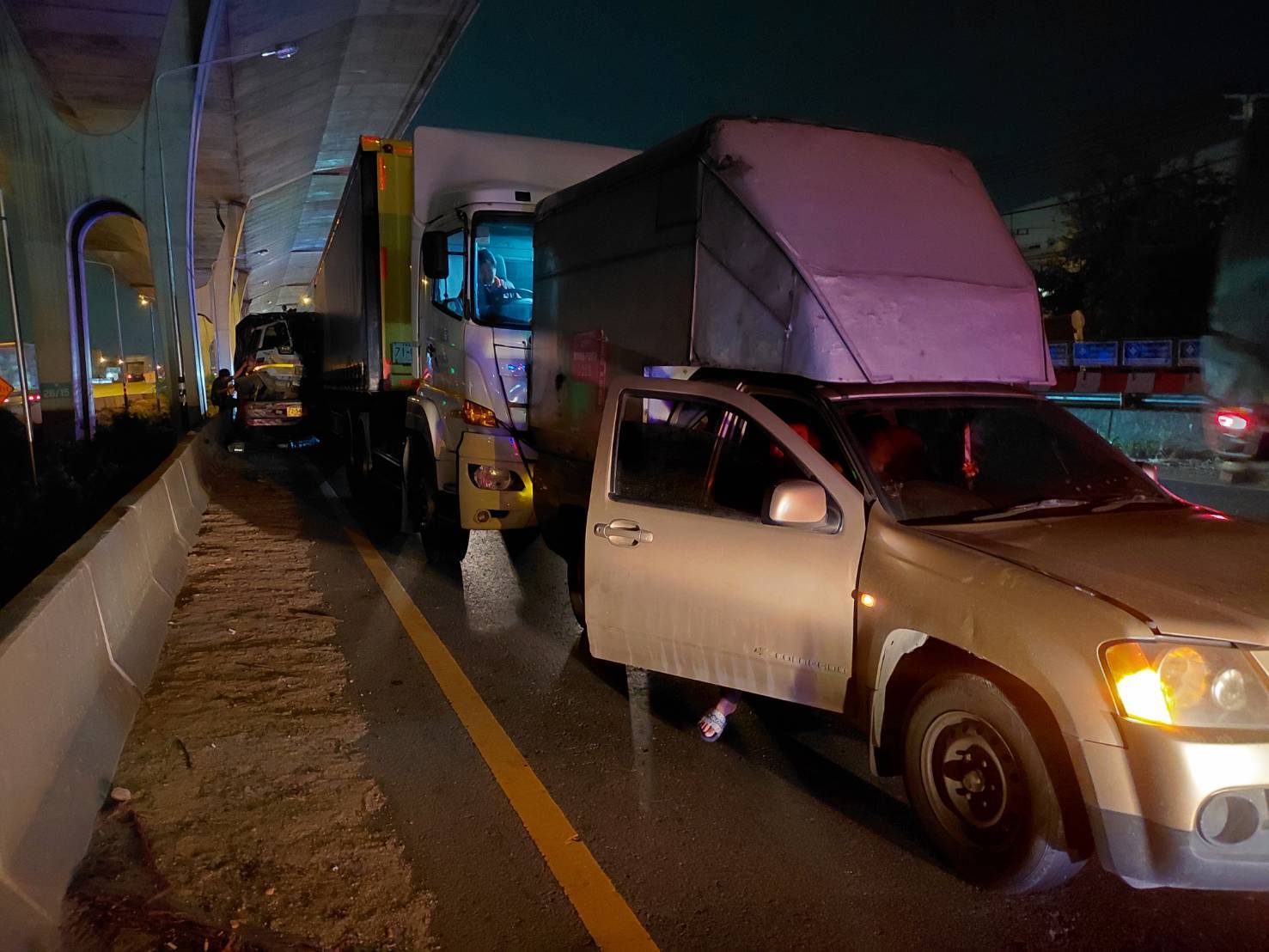 ช่วงเช้ามืด วันนี้ 13 ธันวาคม 2568 อุบัติเหตุ รถยนต์นั่งส่วนบุคคล ชนแบริเออร์ พลิกคว่ำ บนถนนเทพรัตน (บางนา-ตราด) บริเวณหลักกิโลเมตรที่26 ในช่องทางหลัก ฝั่งขาออก มุ่งหน้าชลบุรี และเกิดอุบัติเหตุซ้ำซ้อน มีรถพ่วง รถบรรทุก และรถกระบะ ชนท้ายกัน ที่เกิดเหตุ มีผู้บาดเจ็บ 2 ราย เป็นชายขับรถยนต์นั่งส่วนบุคคล ที่ชนแบริเออร์และพลิกคว่ำ และหญิง 1 ราย ที่มากับรถบรรทุก ที่เกิดเหตุท้องที่รับผิดชอบของ สถานีตำรวจภูธรบางบ่อ