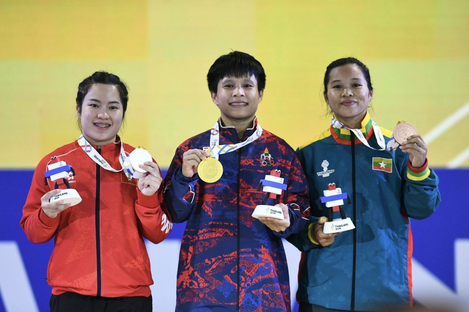 ส่วนเหรียญเงินเป็นของ ฮอย เฮือง เหงียน จากเวียดนาม 197 กิโลกรัม (ท่าสแนทช์ 88 กิโลกรัม, ท่าคลีนแอนด์เจิร์ก 109 กิโลกรัม) และ เหรียญทองแดง ยาร์ นอว์ ตา โบ จากเมียนมา 191 กิโลกรัม (ท่าสแนทช์ 81 กิโลกรัม, ท่าคลีนแอนด์เจิร์ก 110 กิโลกรัม)