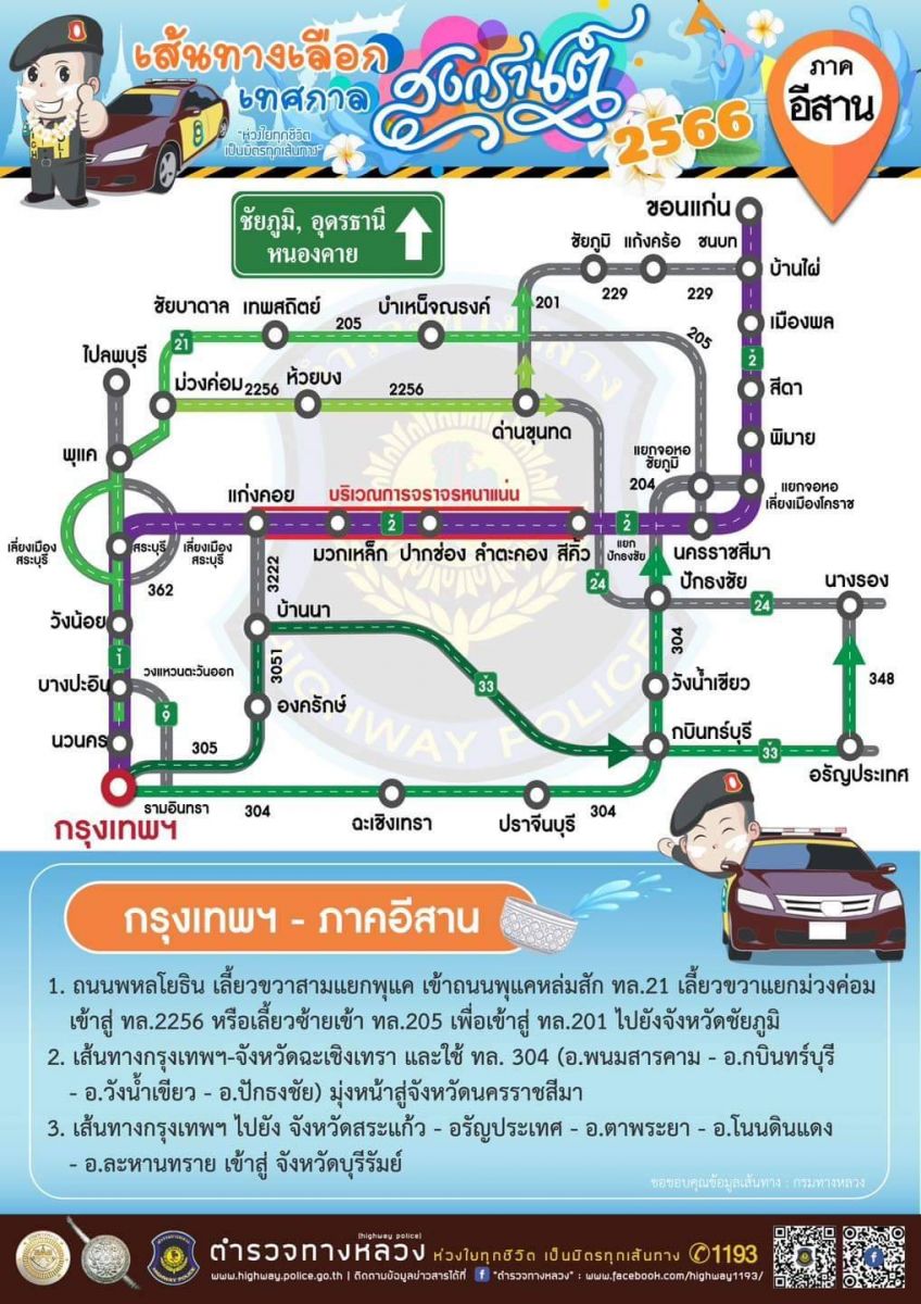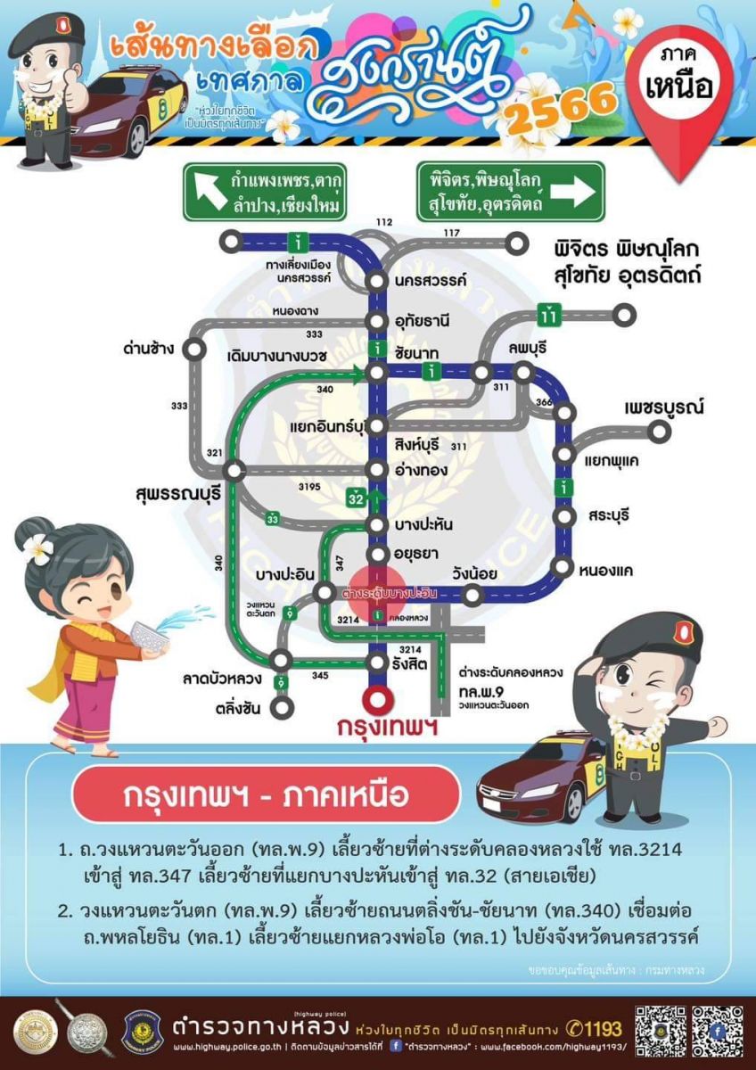 เส้นทางเลี่ยง เทศกาลสงกรานต์ 2566 4 ภาค