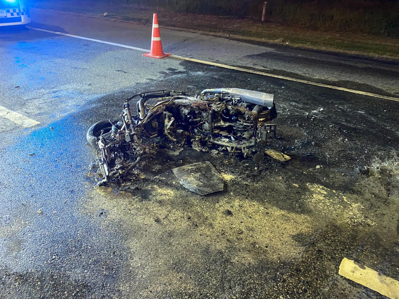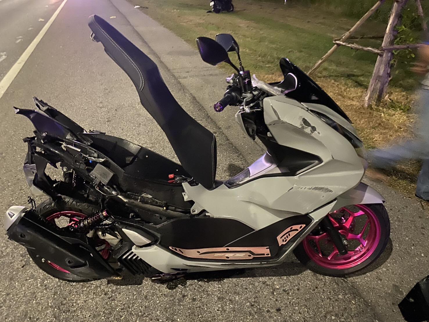 ที่เกิดเหตุ พบรถจักรยานยนต์ ฮอนด้า จีออโน่ สีเทา ป้ายทะเบียน กทม., รถจักรยานยนต์ ฮอนด้า ฟอร์ซ่า สีดำ ป้ายทะเบียน กทม., รถจักรยานยนต์ ฮอนด้า สีเทา ยังไม่ทราบทะเบียน และ รถจักรยานยนต์ ฮอนด้า ฟอร์ซ่า ยังไม่ทราบสีและทะเบียน เนื่องจากเพลิงไหม้เสียหายทั้งคัน
