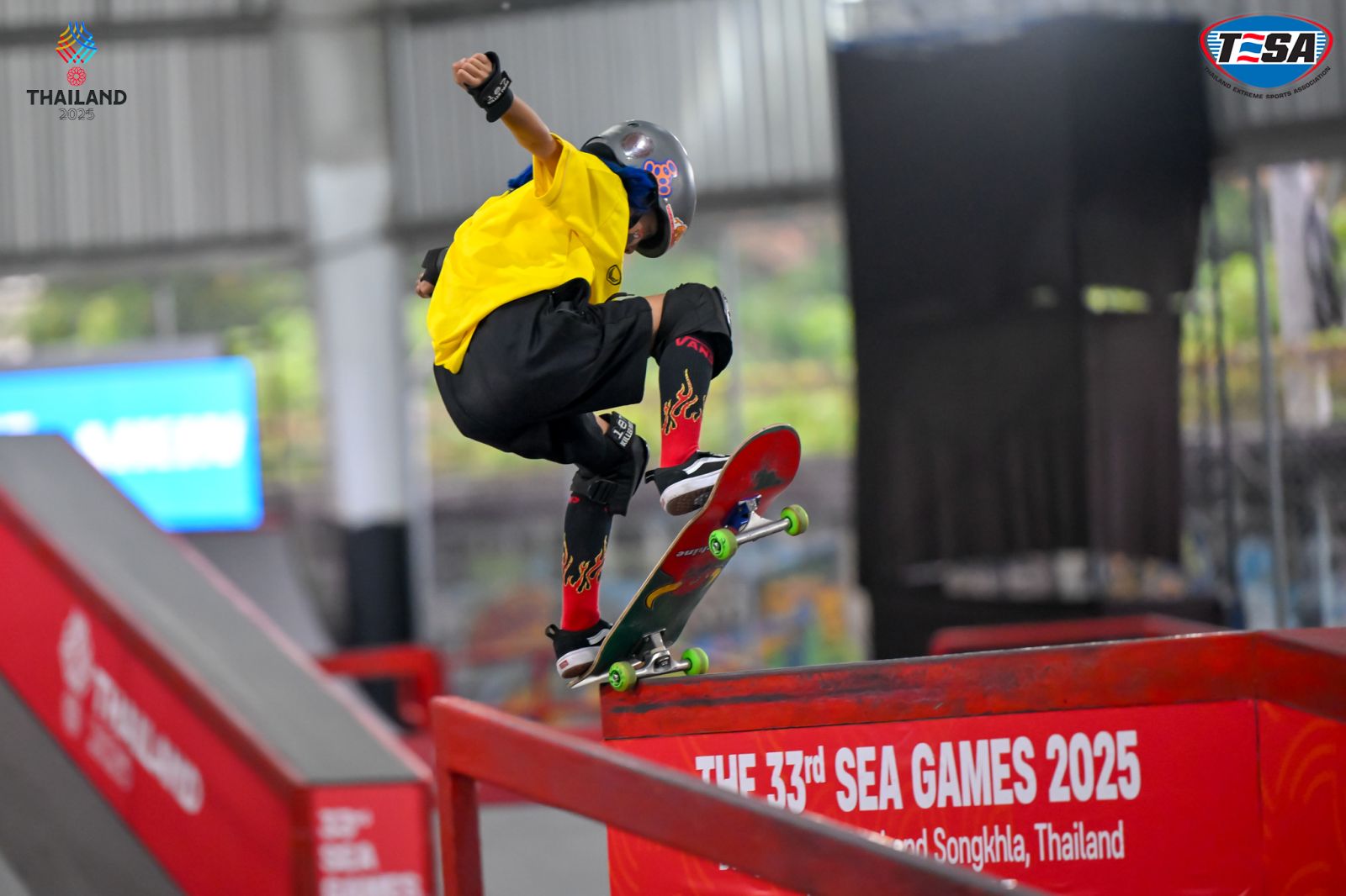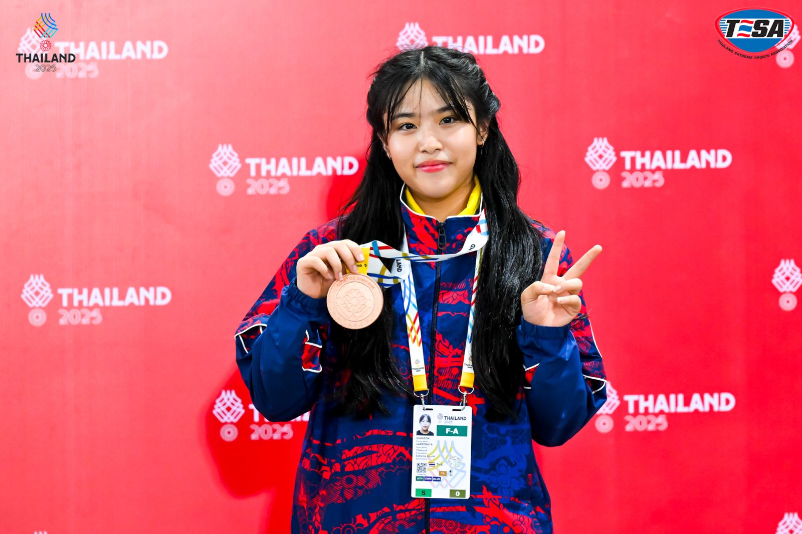 และ 'เอสที' เด็กหญิงวารีรยา สุขเกษม วัย 13 ปี นักสเก็ตบอร์ดทีมชาติไทย คว้าเหรียญทองแดง ทำได้ 111.18 คะแนน ในการแข่งขันสเก็ตบอร์ดสตรีท ในมหกรรมกีฬาซีเกมส์ ครั้งที่ 33 แข่งขันกันที่สนามกีฬาเอ็กซ์ตรีม การกีฬาแห่งประเทศไทย หัวหมาก เมื่อวันที่ 14 ธ.ค. 2568