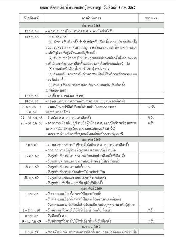 - วันอาทิตย์ที่ 8 กุมภาพันธ์ 2569 เป็นวันเลือกตั้งสมาชิกสภาผู้แทนราษฎร
