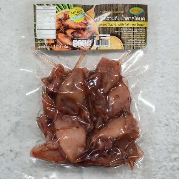 • หมึกหวานต้มน้ำตาลโตนด จ.สงขลา เมนูอาหารพื้นบ้านของทางภาคใต้ที่มีรสชาติกลมกล่อม กลิ่นหอม ผลิตจากวัตถุดิบที่มาจากปักษ์ใต้แท้ๆ สด สะอาด คุณภาพเน้นๆ ผสมผสานด้วยกรรมวิธีการผลิตแบบดั้งเดิม
