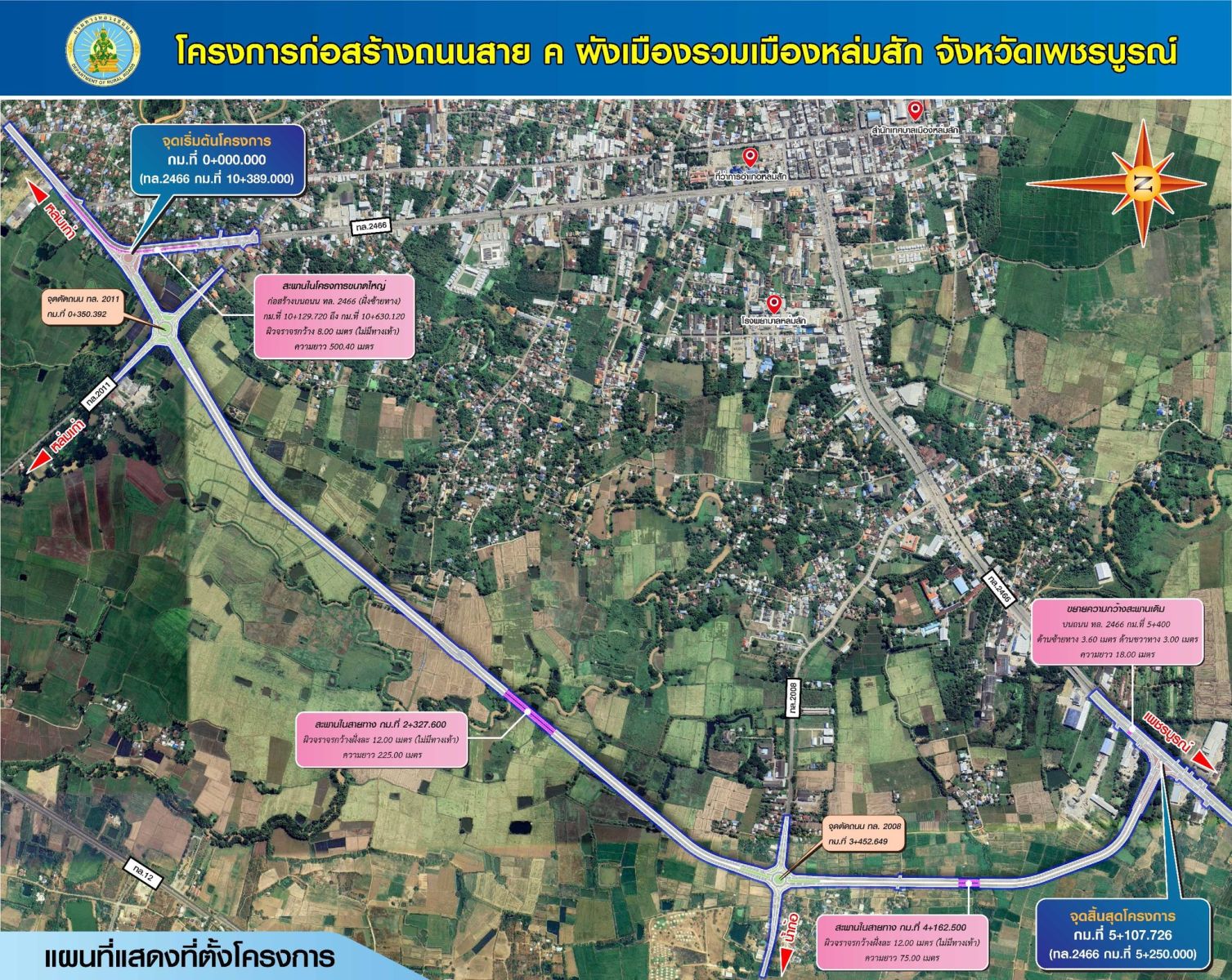 นายพิชิต หุ่นศิริ อธิบดีกรมทางหลวงชนบท เปิดเผยว่า อำเภอหล่มสัก เป็นอำเภอที่มีขนาดพื้นที่และจำนวนประชากรใหญ่เป็นอันดับสองรองจากอำเภอเมืองเพชรบูรณ์ เป็นแหล่งรวบรวมสินค้าการเกษตรที่สำคัญ เป็นจุดพักรถและขนส่งสินค้าระหว่างภาคเหนือถึงภาคอีสาน อีกทั้งยังเป็นประตูสู่แหล่งท่องเที่ยวทางธรรมชาติที่สำคัญ ทช. จึงได้เล็งเห็นถึงความจำเป็นในการก่อสร้างถนน สาย ค ผังเมืองรวมเมืองหล่มสัก จังหวัดเพชรบูรณ์ ซึ่งปัจจุบัน ทช. อยู่ระหว่างเตรียมดำเนินการก่อสร้างโครงการดังกล่าวแล้ว คาดว่าจะก่อสร้างแล้วเสร็จในปี 2571 ใช้งบประมาณในการก่อสร้างรวม 618.543 ล้านบาท โดยโครงการก่อสร้างถนนสายนี้ มีจุดเริ่มต้นโครงการบริเวณ กม.ที่ 0+000 เชื่อมต่อกับ ทล.2466 กม.ที่ 10+389 และไปสิ้นสุดโครงการ กม.ที่ 5+107 เชื่อมต่อกับ ทล.2466 กม.ที่ 5+250 รวมระยะทางโครงการ 5.089 กิโลเมตร โดยจะก่อสร้างเป็นถนนผิวจราจรแอสฟัลติกคอนกรีต ขนาด 4 ช่องจราจร ไป - กลับ กว้างช่องจราจร ช่องละ 3.50 เมตร มีไหล่ทางด้านซ้ายกว้าง 2.50 เมตร และด้านขวากว้าง 1.50 เมตร แบ่งทิศทางด้วยเกาะกลางถนนแบบกดเป็นร่องกว้าง พร้อมก่อสร้างทางแยกบริเวณจุดเริ่มต้นโครการ ทางแยกระดับพื้นดินจัดการจราจรแบบวงเวียนขนาด 2 ช่องจราจร และมีการก่อสร้างทางแยกจุดตัด บริเวณ กม.ที่ 0+486 ของ ทล.2011 และ กม.ที่ 1+615 ของ ทล.2008 เป็นการจัดการจราจรรูปแบบวงเวียนขนาด 2 ช่องจราจร รวมถึงจะมีการก่อสร้างสะพานในสายทาง จำนวน 2 แห่ง และมีการก่อสร้างปรับปรุงทางแยกบริเวณจุดสิ้นสุดโครงการ เป็นทางแยกระดับพื้นดินรูปตัวที มีการติดตั้งสัญญาณไฟจราจร รวมถึงปรับปรุงขยายช่องจราจรบนถนน ทล.2466 (ตั้งแต่ช่วง กม.ที่ 4+896 - กม.ที่ 5+600) สำหรับรถที่รอเลี้ยวขวาอีกด้วย